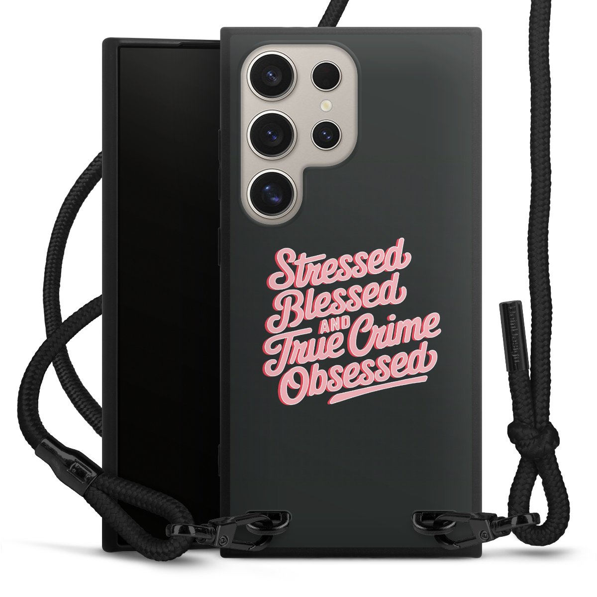 The matt black silicone case is made of flexible TPU (thermoplastic polyurethane) and offers robust protection. The durable, unbreakable material makes the cover flexible and dimensionally stable at the same time. The matte surface makes your design stand out more and is less susceptible to fingerprints and dirt. The stylish trend accessory fits comfortably in the hand and is perfectly complemented by the fabric (polyester) mobile phone strap. The braided fabric strap is approx. 1.70 metres long with a diameter of approx. 0.5 cm. Due to the special knotting technique, the length of the strap can be adjusted by simply pulling it, so that you can adapt it individually to your wishes. The practical case to wear around your neck is available with the fabric strap in black. As a little icing on the cake, we have provided the strap with a chic metal fastener in matt black. The strap is securely fastened to the case with loops made of high-quality genuine leather and press studs. The ends of the fabric strap are covered with metallic end caps and thus protected from fraying.