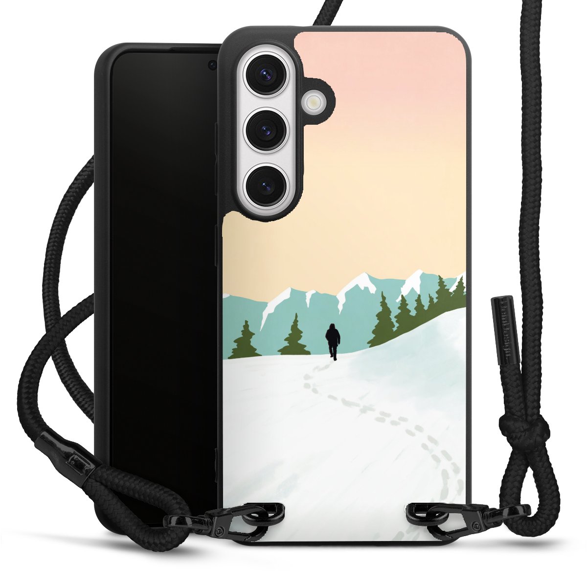 We use the solid direct print process for this phone case, which is why the print area only covers the back and the edge remains unprinted. The case to wear around your neck can be ordered unprinted, fully printed, or partially printed. For your design, either choose one of our exclusive shop motifs or get creative and create your own design, for example with photos and overlays. Design your own personal trend accessory and make an individual statement on the streets!