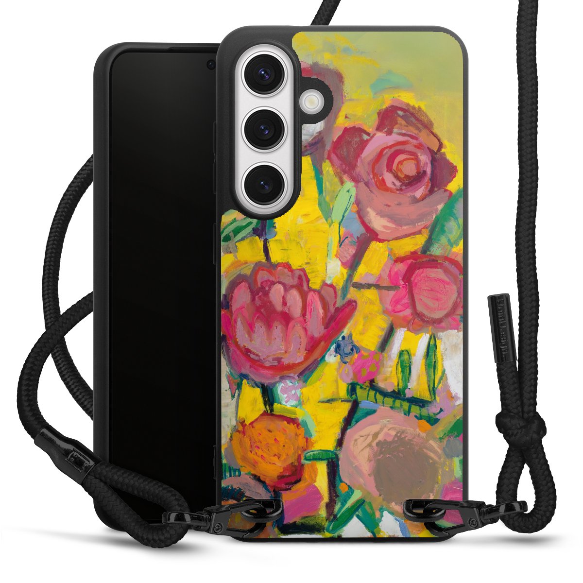 We use the solid direct print process for this phone case, which is why the print area only covers the back and the edge remains unprinted. The case to wear around your neck can be ordered unprinted, fully printed, or partially printed. For your design, either choose one of our exclusive shop motifs or get creative and create your own design, for example with photos and overlays. Design your own personal trend accessory and make an individual statement on the streets!