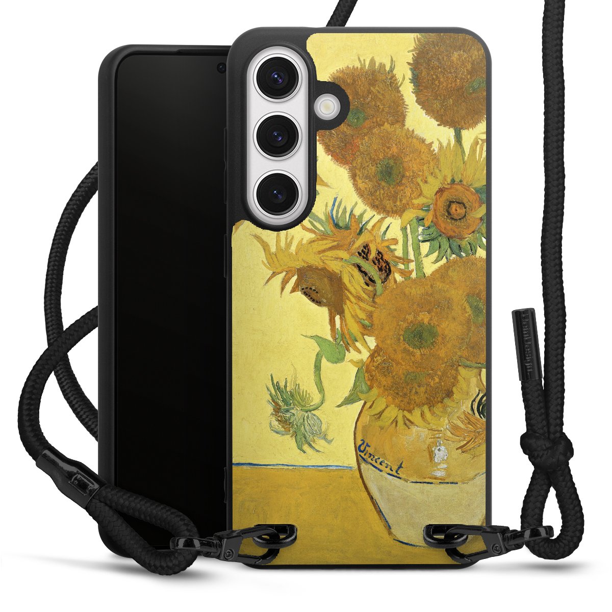 The matt black silicone case is made of flexible TPU (thermoplastic polyurethane) and offers robust protection. The durable, unbreakable material makes the cover flexible and dimensionally stable at the same time. The matte surface makes your design stand out more and is less susceptible to fingerprints and dirt. The stylish trend accessory fits comfortably in the hand and is perfectly complemented by the fabric (polyester) mobile phone strap. The braided fabric strap is approx. 1.70 metres long with a diameter of approx. 0.5 cm. Due to the special knotting technique, the length of the strap can be adjusted by simply pulling it, so that you can adapt it individually to your wishes. The practical case to wear around your neck is available with the fabric strap in black. As a little icing on the cake, we have provided the strap with a chic metal fastener in matt black. The strap is securely fastened to the case with loops made of high-quality genuine leather and press studs. The ends of the fabric strap are covered with metallic end caps and thus protected from fraying.