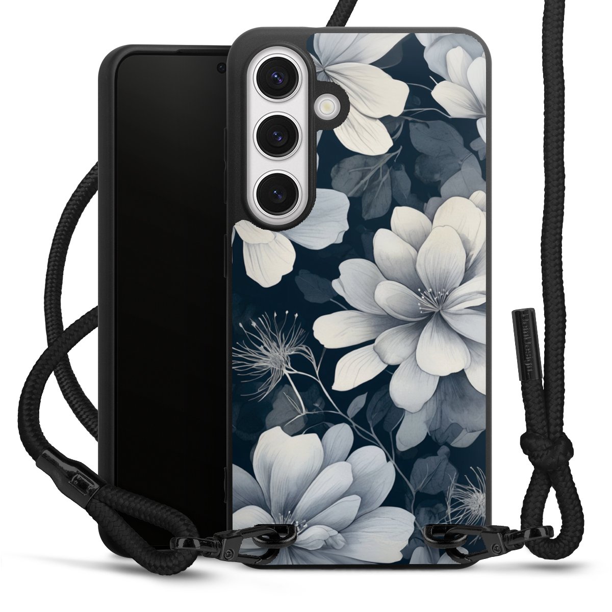 The matt black silicone case is made of flexible TPU (thermoplastic polyurethane) and offers robust protection. The durable, unbreakable material makes the cover flexible and dimensionally stable at the same time. The matte surface makes your design stand out more and is less susceptible to fingerprints and dirt. The stylish trend accessory fits comfortably in the hand and is perfectly complemented by the fabric (polyester) mobile phone strap. The braided fabric strap is approx. 1.70 metres long with a diameter of approx. 0.5 cm. Due to the special knotting technique, the length of the strap can be adjusted by simply pulling it, so that you can adapt it individually to your wishes. The practical case to wear around your neck is available with the fabric strap in black. As a little icing on the cake, we have provided the strap with a chic metal fastener in matt black. The strap is securely fastened to the case with loops made of high-quality genuine leather and press studs. The ends of the fabric strap are covered with metallic end caps and thus protected from fraying.