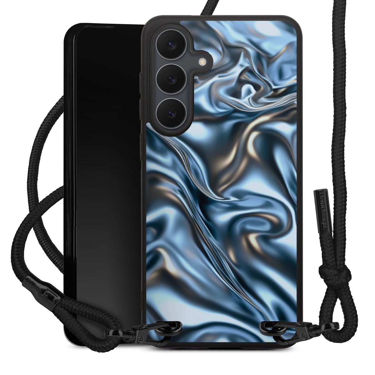 The matt black silicone case is made of flexible TPU (thermoplastic polyurethane) and offers robust protection. The durable, unbreakable material makes the cover flexible and dimensionally stable at the same time. The matte surface makes your design stand out more and is less susceptible to fingerprints and dirt. The stylish trend accessory fits comfortably in the hand and is perfectly complemented by the fabric (polyester) mobile phone strap. The braided fabric strap is approx. 1.70 metres long with a diameter of approx. 0.5 cm. Due to the special knotting technique, the length of the strap can be adjusted by simply pulling it, so that you can adapt it individually to your wishes. The practical case to wear around your neck is available with the fabric strap in black. As a little icing on the cake, we have provided the strap with a chic metal fastener in matt black. The strap is securely fastened to the case with loops made of high-quality genuine leather and press studs. The ends of the fabric strap are covered with metallic end caps and thus protected from fraying.