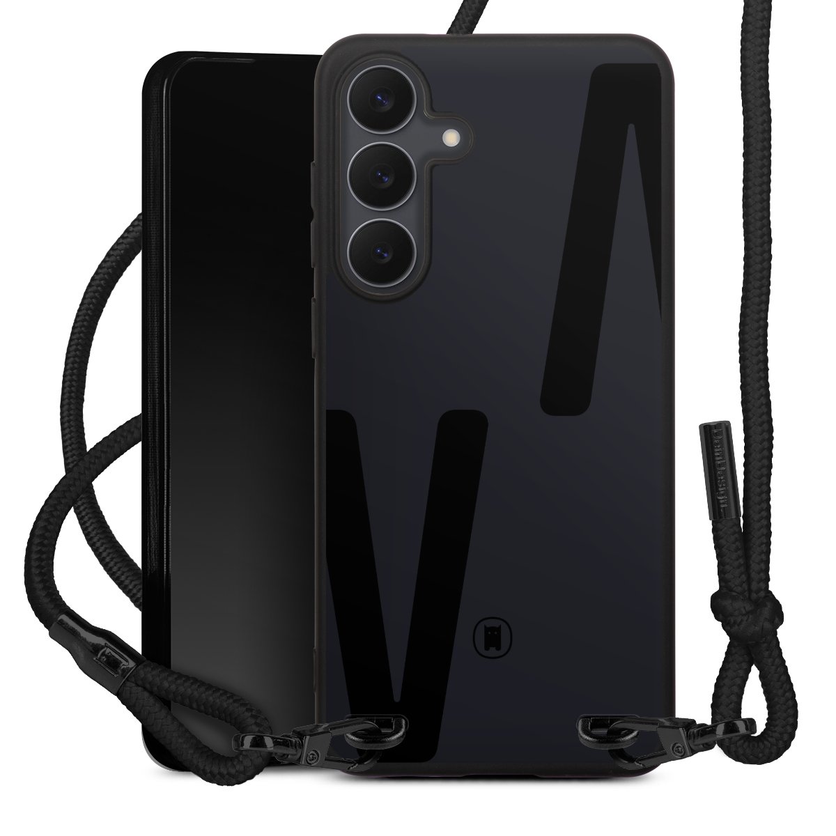 Pure Black: Phone case, fabric strap and metal details in stylish matt black.