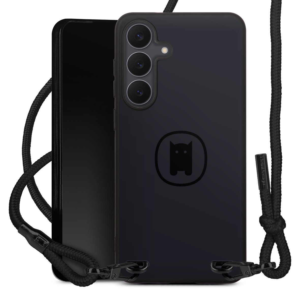 The matt black silicone case is made of flexible TPU (thermoplastic polyurethane) and offers robust protection. The durable, unbreakable material makes the cover flexible and dimensionally stable at the same time. The matte surface makes your design stand out more and is less susceptible to fingerprints and dirt. The stylish trend accessory fits comfortably in the hand and is perfectly complemented by the fabric (polyester) mobile phone strap. The braided fabric strap is approx. 1.70 metres long with a diameter of approx. 0.5 cm. Due to the special knotting technique, the length of the strap can be adjusted by simply pulling it, so that you can adapt it individually to your wishes. The practical case to wear around your neck is available with the fabric strap in black. As a little icing on the cake, we have provided the strap with a chic metal fastener in matt black. The strap is securely fastened to the case with loops made of high-quality genuine leather and press studs. The ends of the fabric strap are covered with metallic end caps and thus protected from fraying.