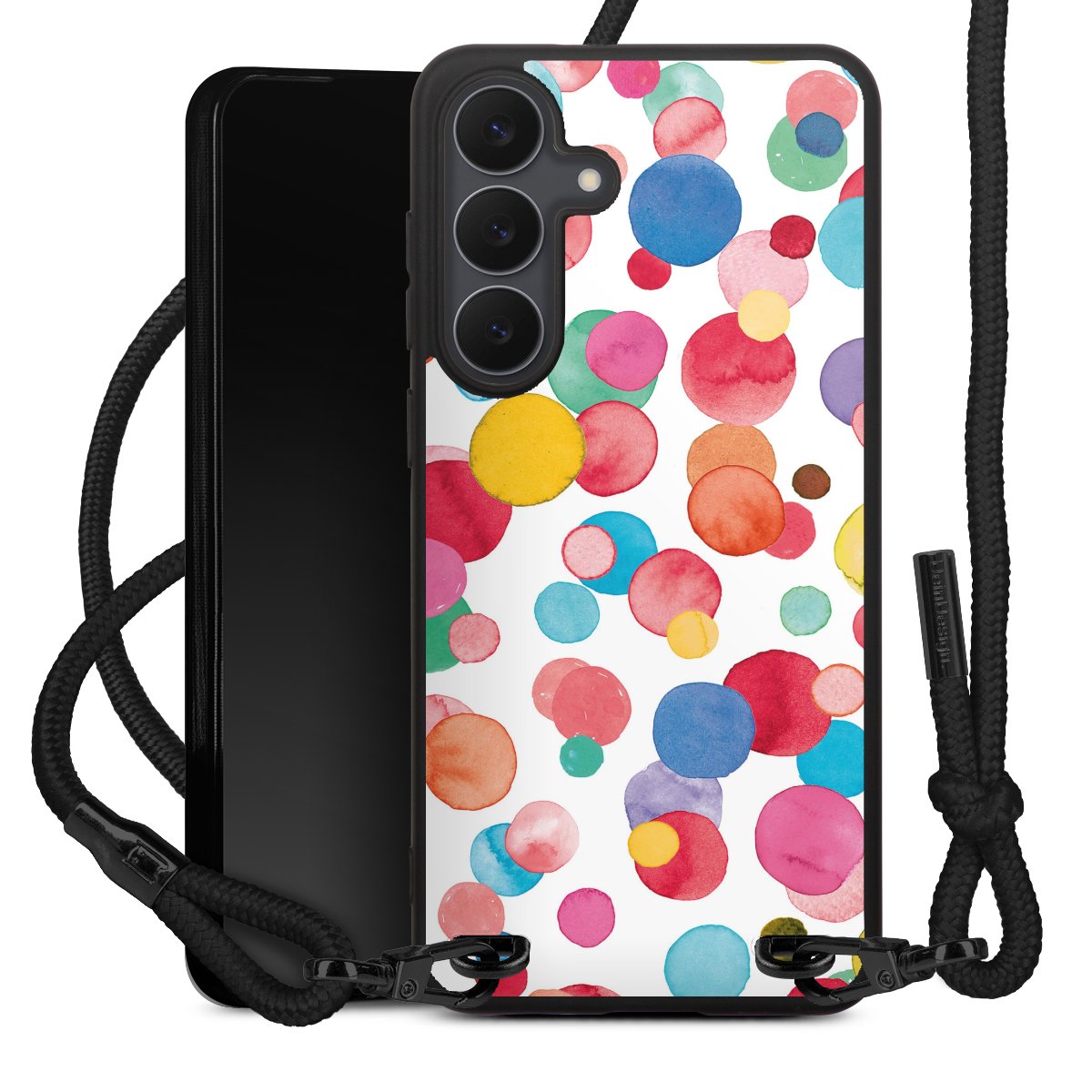 We use the solid direct print process for this phone case, which is why the print area only covers the back and the edge remains unprinted. The case to wear around your neck can be ordered unprinted, fully printed, or partially printed. For your design, either choose one of our exclusive shop motifs or get creative and create your own design, for example with photos and overlays. Design your own personal trend accessory and make an individual statement on the streets!