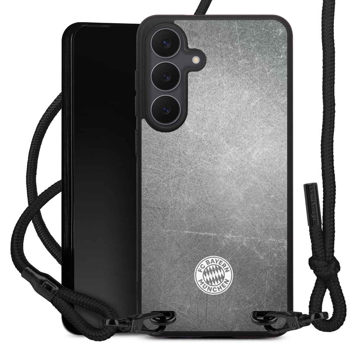 Pure Black: Phone case, fabric strap and metal details in stylish matt black.