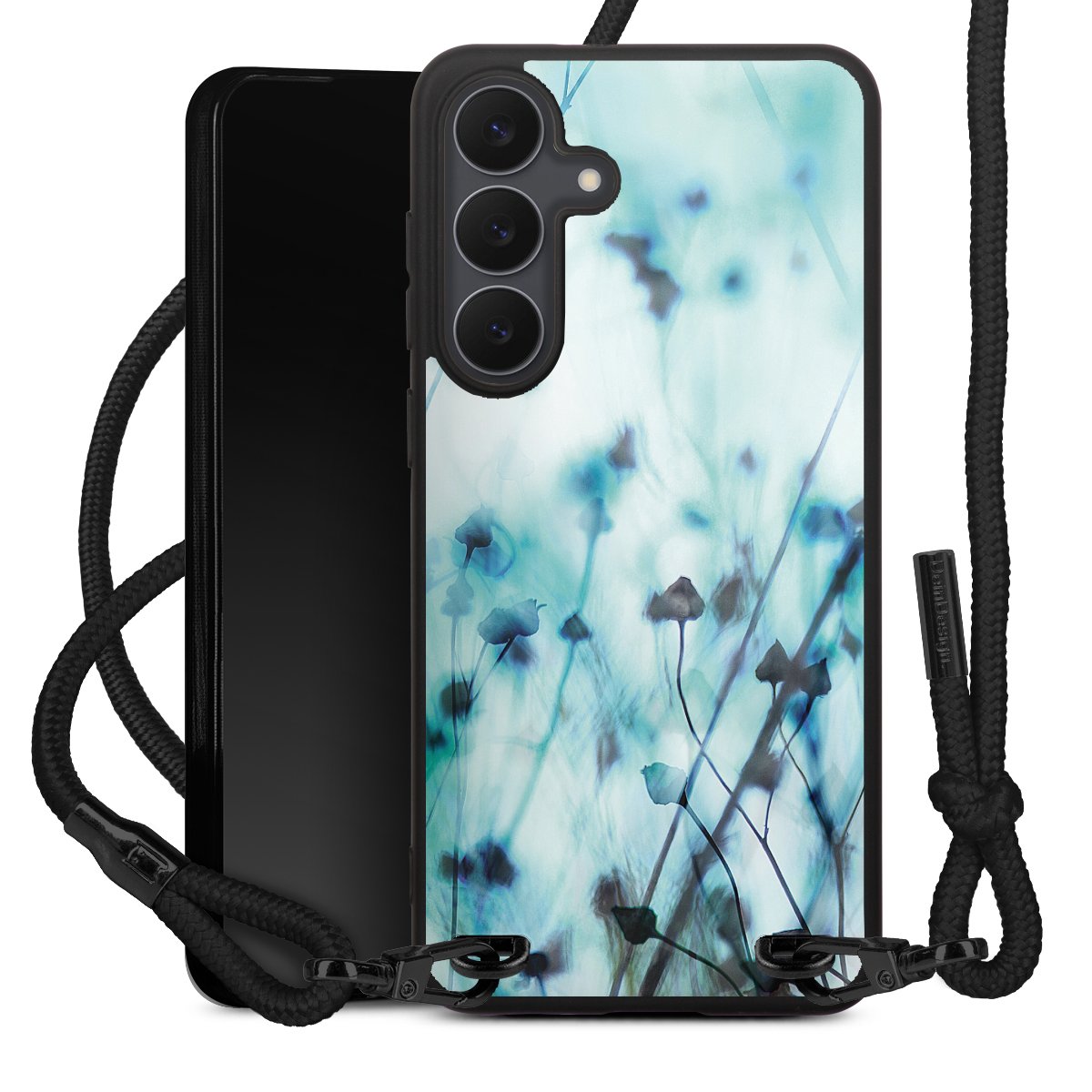 The matt black silicone case is made of flexible TPU (thermoplastic polyurethane) and offers robust protection. The durable, unbreakable material makes the cover flexible and dimensionally stable at the same time. The matte surface makes your design stand out more and is less susceptible to fingerprints and dirt. The stylish trend accessory fits comfortably in the hand and is perfectly complemented by the fabric (polyester) mobile phone strap. The braided fabric strap is approx. 1.70 metres long with a diameter of approx. 0.5 cm. Due to the special knotting technique, the length of the strap can be adjusted by simply pulling it, so that you can adapt it individually to your wishes. The practical case to wear around your neck is available with the fabric strap in black. As a little icing on the cake, we have provided the strap with a chic metal fastener in matt black. The strap is securely fastened to the case with loops made of high-quality genuine leather and press studs. The ends of the fabric strap are covered with metallic end caps and thus protected from fraying.