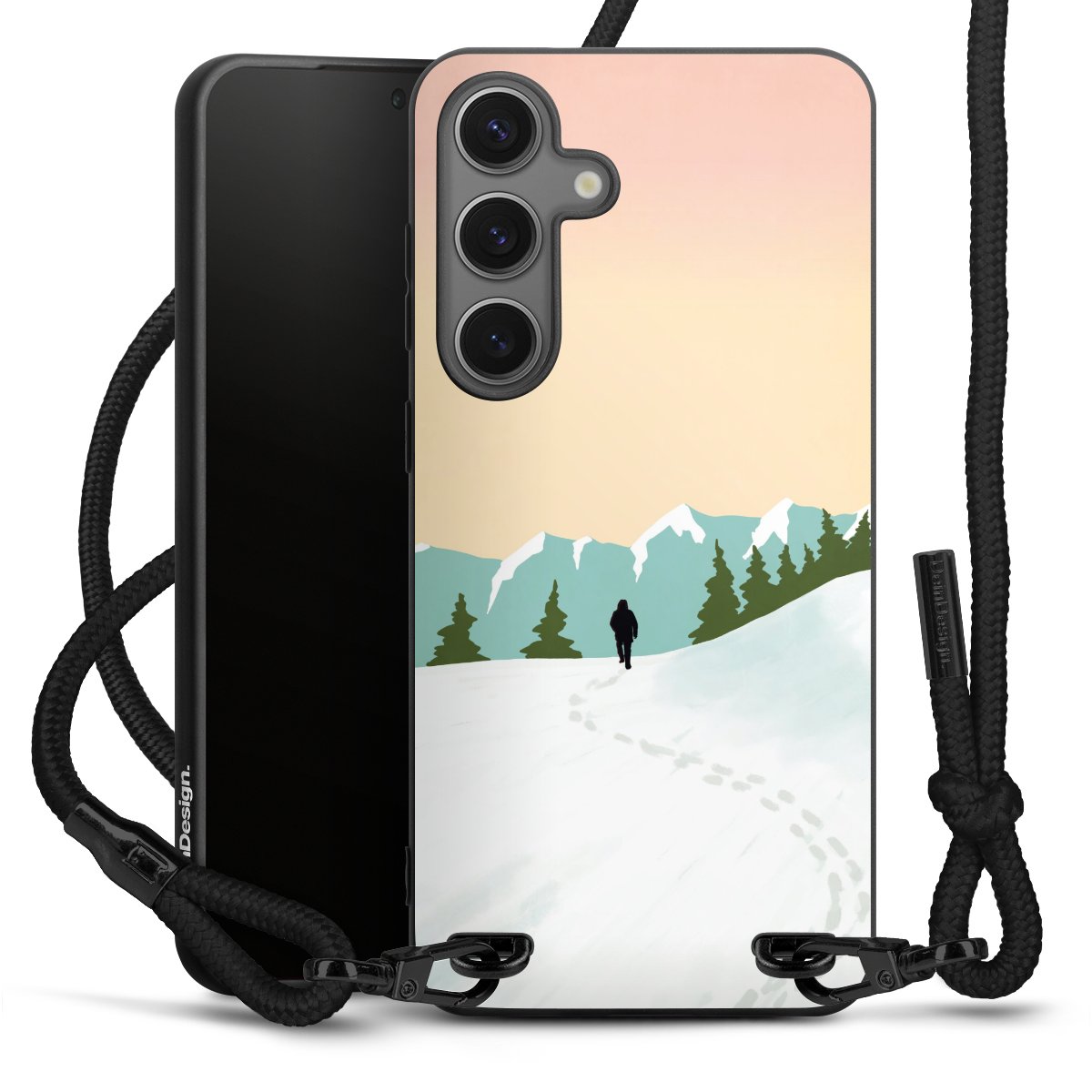 We use the solid direct print process for this phone case, which is why the print area only covers the back and the edge remains unprinted. The case to wear around your neck can be ordered unprinted, fully printed, or partially printed. For your design, either choose one of our exclusive shop motifs or get creative and create your own design, for example with photos and overlays. Design your own personal trend accessory and make an individual statement on the streets!