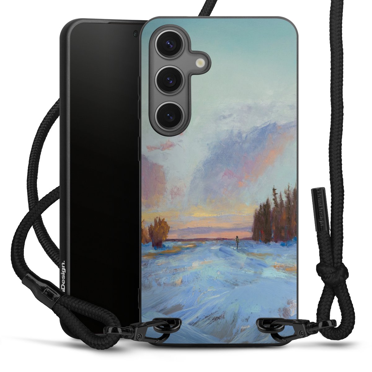 We use the solid direct print process for this phone case, which is why the print area only covers the back and the edge remains unprinted. The case to wear around your neck can be ordered unprinted, fully printed, or partially printed. For your design, either choose one of our exclusive shop motifs or get creative and create your own design, for example with photos and overlays. Design your own personal trend accessory and make an individual statement on the streets!