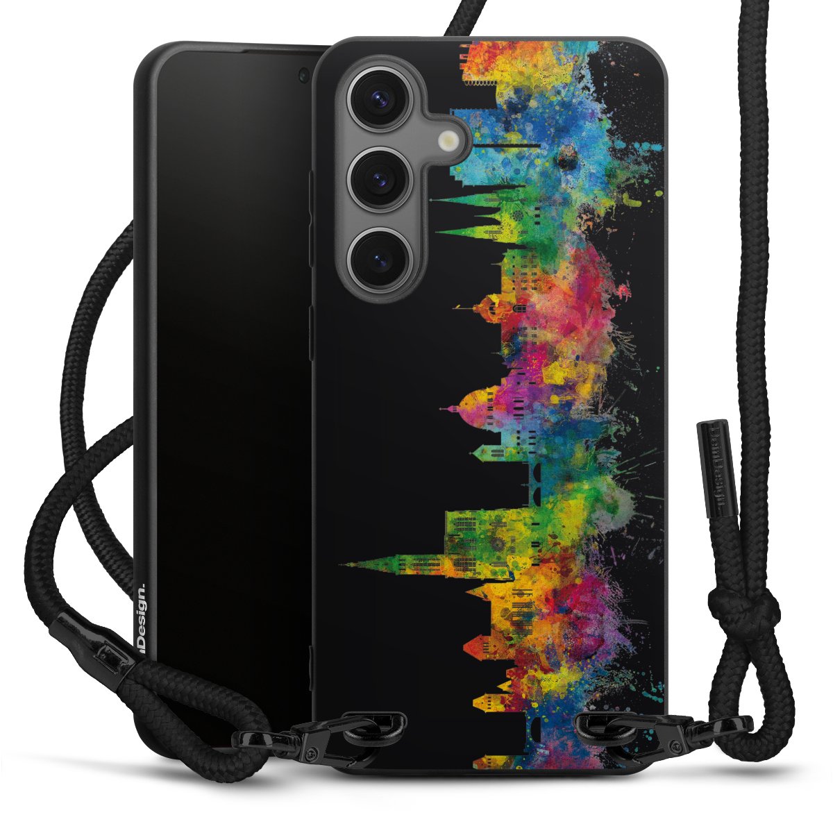 We use the solid direct print process for this phone case, which is why the print area only covers the back and the edge remains unprinted. The case to wear around your neck can be ordered unprinted, fully printed, or partially printed. For your design, either choose one of our exclusive shop motifs or get creative and create your own design, for example with photos and overlays. Design your own personal trend accessory and make an individual statement on the streets!