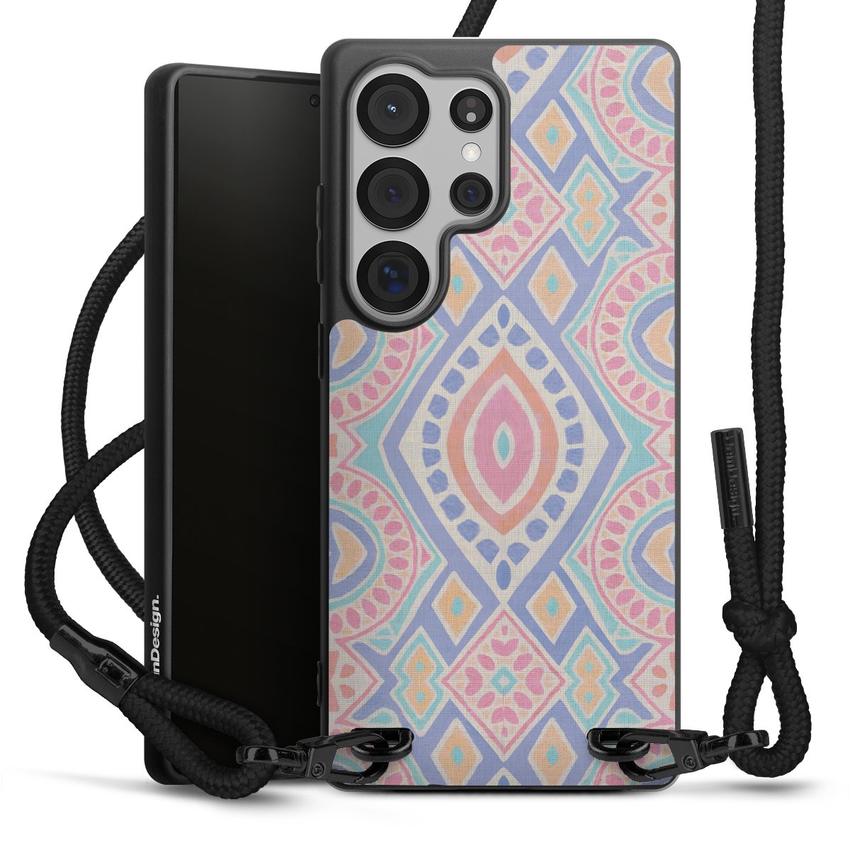 We use the solid direct print process for this phone case, which is why the print area only covers the back and the edge remains unprinted. The case to wear around your neck can be ordered unprinted, fully printed, or partially printed. For your design, either choose one of our exclusive shop motifs or get creative and create your own design, for example with photos and overlays. Design your own personal trend accessory and make an individual statement on the streets!