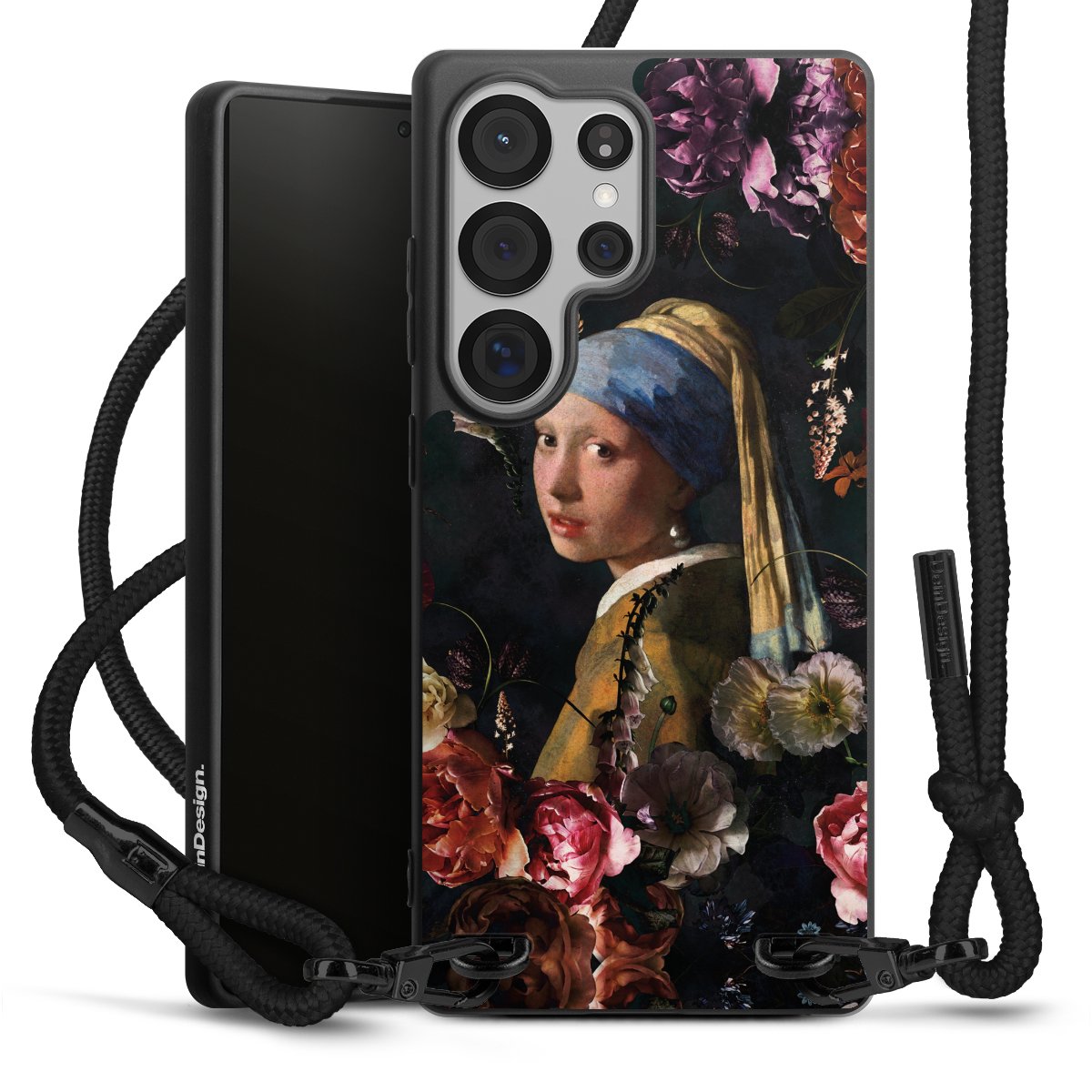 The matt black silicone case is made of flexible TPU (thermoplastic polyurethane) and offers robust protection. The durable, unbreakable material makes the cover flexible and dimensionally stable at the same time. The matte surface makes your design stand out more and is less susceptible to fingerprints and dirt. The stylish trend accessory fits comfortably in the hand and is perfectly complemented by the fabric (polyester) mobile phone strap. The braided fabric strap is approx. 1.70 metres long with a diameter of approx. 0.5 cm. Due to the special knotting technique, the length of the strap can be adjusted by simply pulling it, so that you can adapt it individually to your wishes. The practical case to wear around your neck is available with the fabric strap in black. As a little icing on the cake, we have provided the strap with a chic metal fastener in matt black. The strap is securely fastened to the case with loops made of high-quality genuine leather and press studs. The ends of the fabric strap are covered with metallic end caps and thus protected from fraying.