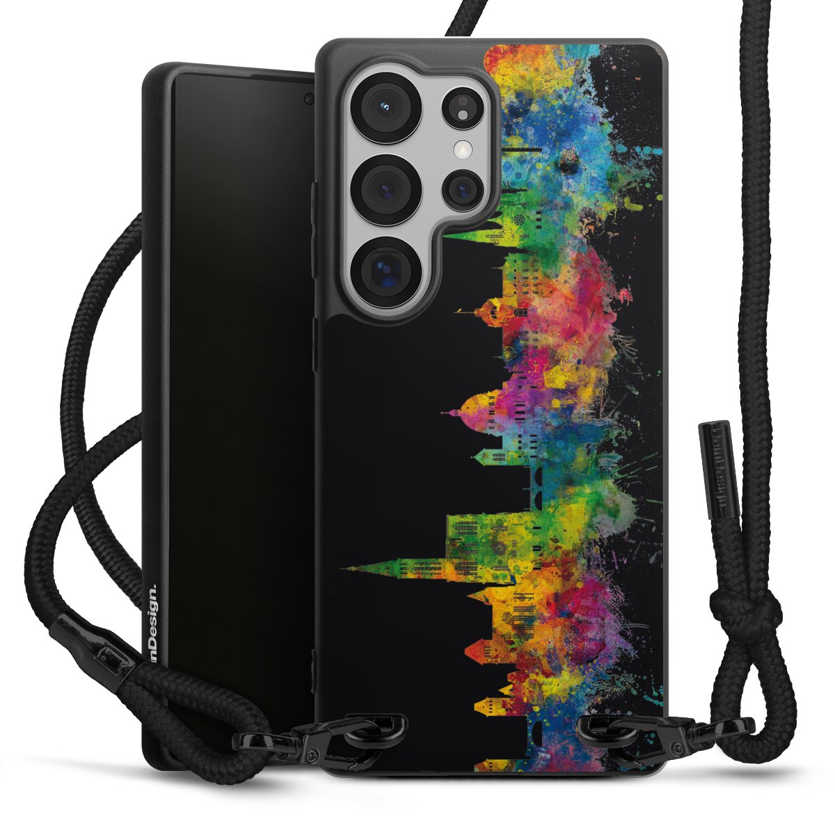 We use the solid direct print process for this phone case, which is why the print area only covers the back and the edge remains unprinted. The case to wear around your neck can be ordered unprinted, fully printed, or partially printed. For your design, either choose one of our exclusive shop motifs or get creative and create your own design, for example with photos and overlays. Design your own personal trend accessory and make an individual statement on the streets!