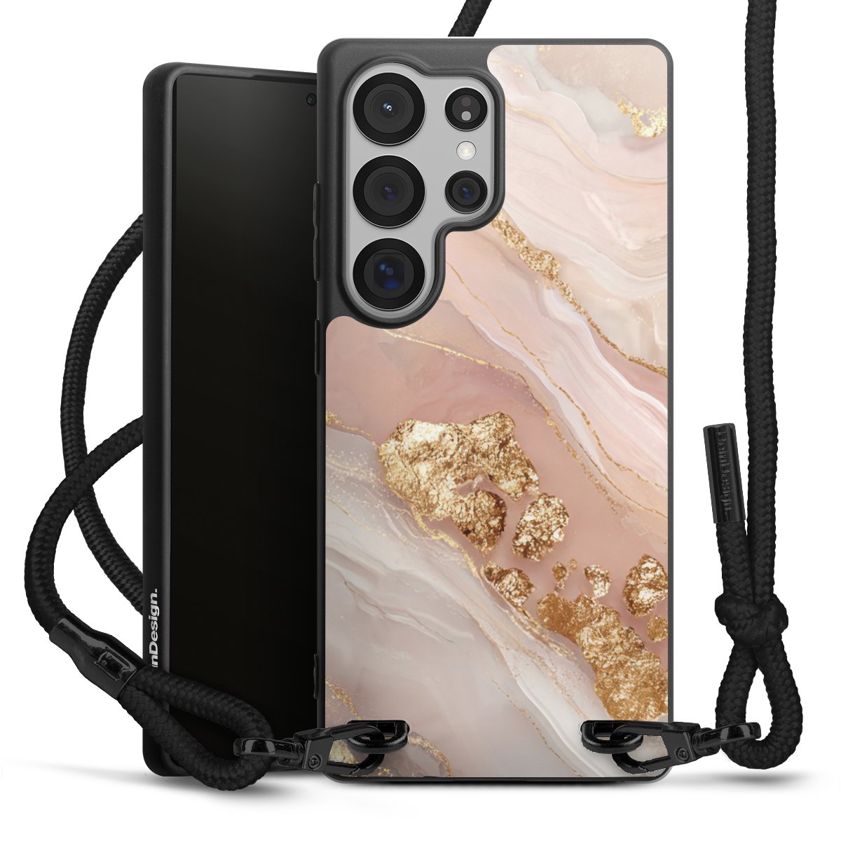 The matt black silicone case is made of flexible TPU (thermoplastic polyurethane) and offers robust protection. The durable, unbreakable material makes the cover flexible and dimensionally stable at the same time. The matte surface makes your design stand out more and is less susceptible to fingerprints and dirt. The stylish trend accessory fits comfortably in the hand and is perfectly complemented by the fabric (polyester) mobile phone strap. The braided fabric strap is approx. 1.70 metres long with a diameter of approx. 0.5 cm. Due to the special knotting technique, the length of the strap can be adjusted by simply pulling it, so that you can adapt it individually to your wishes. The practical case to wear around your neck is available with the fabric strap in black. As a little icing on the cake, we have provided the strap with a chic metal fastener in matt black. The strap is securely fastened to the case with loops made of high-quality genuine leather and press studs. The ends of the fabric strap are covered with metallic end caps and thus protected from fraying.