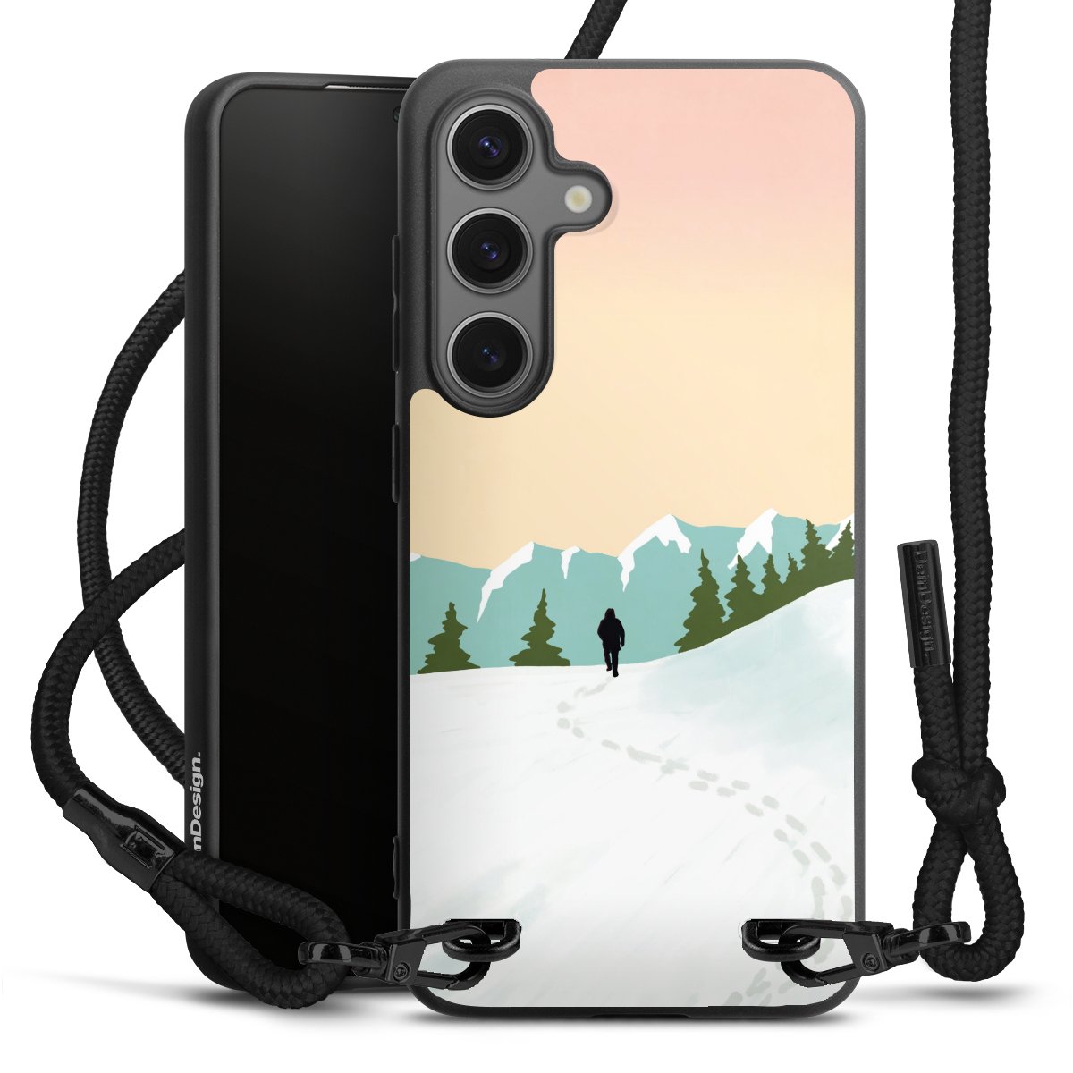We use the solid direct print process for this phone case, which is why the print area only covers the back and the edge remains unprinted. The case to wear around your neck can be ordered unprinted, fully printed, or partially printed. For your design, either choose one of our exclusive shop motifs or get creative and create your own design, for example with photos and overlays. Design your own personal trend accessory and make an individual statement on the streets!