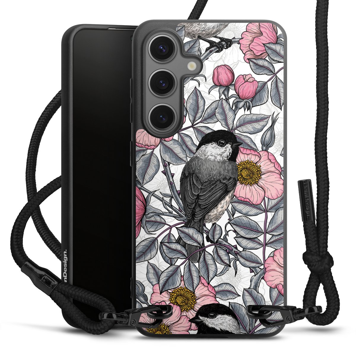 The matt black silicone case is made of flexible TPU (thermoplastic polyurethane) and offers robust protection. The durable, unbreakable material makes the cover flexible and dimensionally stable at the same time. The matte surface makes your design stand out more and is less susceptible to fingerprints and dirt. The stylish trend accessory fits comfortably in the hand and is perfectly complemented by the fabric (polyester) mobile phone strap. The braided fabric strap is approx. 1.70 metres long with a diameter of approx. 0.5 cm. Due to the special knotting technique, the length of the strap can be adjusted by simply pulling it, so that you can adapt it individually to your wishes. The practical case to wear around your neck is available with the fabric strap in black. As a little icing on the cake, we have provided the strap with a chic metal fastener in matt black. The strap is securely fastened to the case with loops made of high-quality genuine leather and press studs. The ends of the fabric strap are covered with metallic end caps and thus protected from fraying.