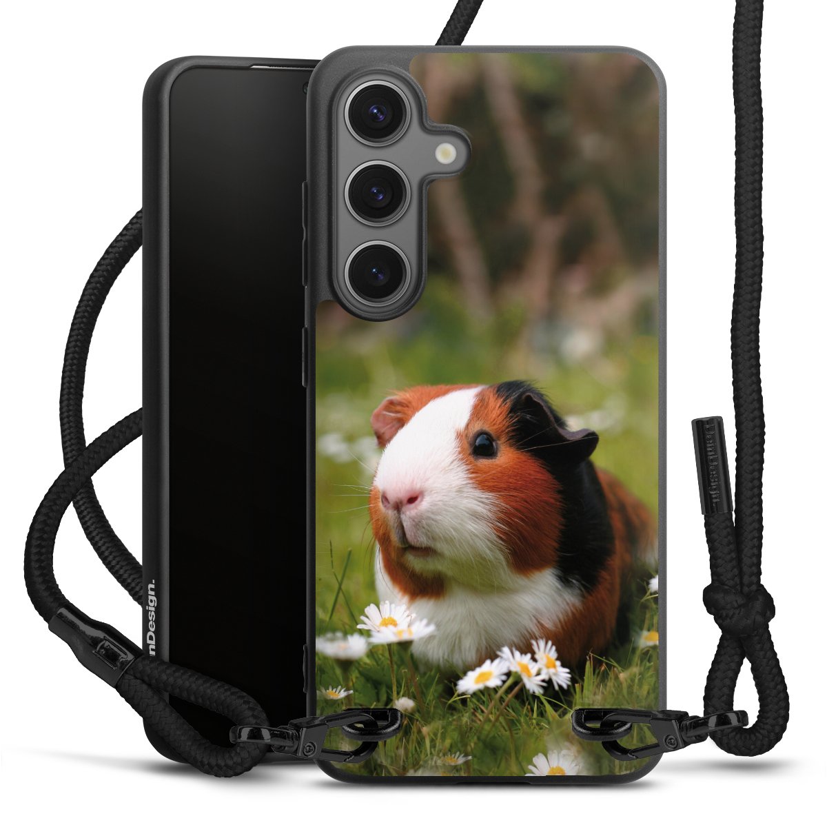 The matt black silicone case is made of flexible TPU (thermoplastic polyurethane) and offers robust protection. The durable, unbreakable material makes the cover flexible and dimensionally stable at the same time. The matte surface makes your design stand out more and is less susceptible to fingerprints and dirt. The stylish trend accessory fits comfortably in the hand and is perfectly complemented by the fabric (polyester) mobile phone strap. The braided fabric strap is approx. 1.70 metres long with a diameter of approx. 0.5 cm. Due to the special knotting technique, the length of the strap can be adjusted by simply pulling it, so that you can adapt it individually to your wishes. The practical case to wear around your neck is available with the fabric strap in black. As a little icing on the cake, we have provided the strap with a chic metal fastener in matt black. The strap is securely fastened to the case with loops made of high-quality genuine leather and press studs. The ends of the fabric strap are covered with metallic end caps and thus protected from fraying.