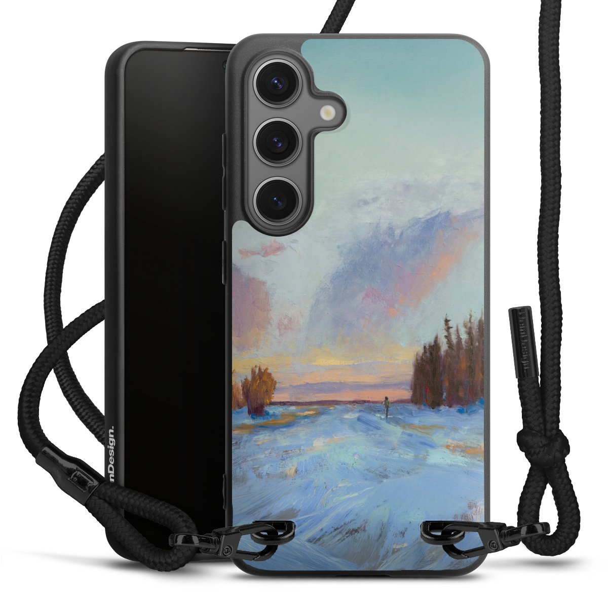 We use the solid direct print process for this phone case, which is why the print area only covers the back and the edge remains unprinted. The case to wear around your neck can be ordered unprinted, fully printed, or partially printed. For your design, either choose one of our exclusive shop motifs or get creative and create your own design, for example with photos and overlays. Design your own personal trend accessory and make an individual statement on the streets!