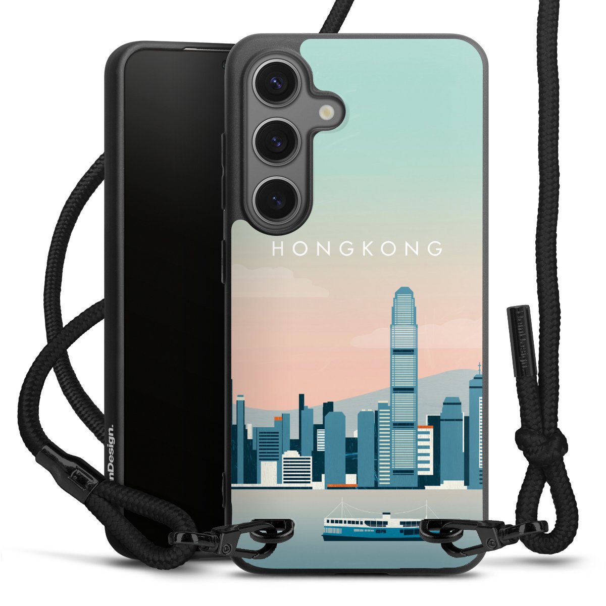 We use the solid direct print process for this phone case, which is why the print area only covers the back and the edge remains unprinted. The case to wear around your neck can be ordered unprinted, fully printed, or partially printed. For your design, either choose one of our exclusive shop motifs or get creative and create your own design, for example with photos and overlays. Design your own personal trend accessory and make an individual statement on the streets!