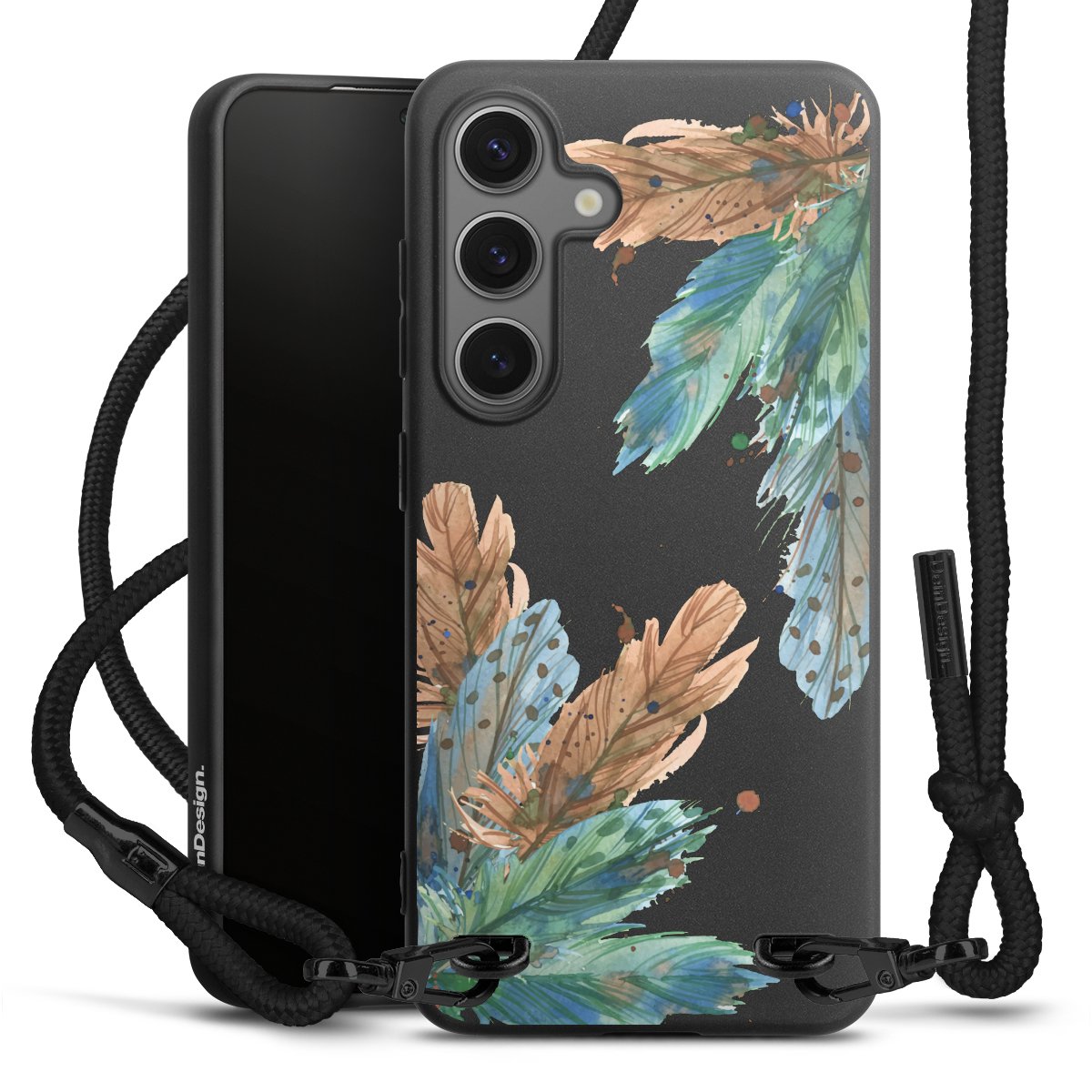 The matt black silicone case is made of flexible TPU (thermoplastic polyurethane) and offers robust protection. The durable, unbreakable material makes the cover flexible and dimensionally stable at the same time. The matte surface makes your design stand out more and is less susceptible to fingerprints and dirt. The stylish trend accessory fits comfortably in the hand and is perfectly complemented by the fabric (polyester) mobile phone strap. The braided fabric strap is approx. 1.70 metres long with a diameter of approx. 0.5 cm. Due to the special knotting technique, the length of the strap can be adjusted by simply pulling it, so that you can adapt it individually to your wishes. The practical case to wear around your neck is available with the fabric strap in black. As a little icing on the cake, we have provided the strap with a chic metal fastener in matt black. The strap is securely fastened to the case with loops made of high-quality genuine leather and press studs. The ends of the fabric strap are covered with metallic end caps and thus protected from fraying.