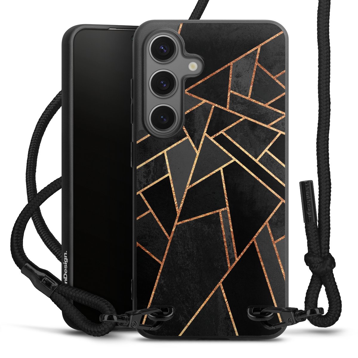 Pure Black: Phone case, fabric strap and metal details in stylish matt black.