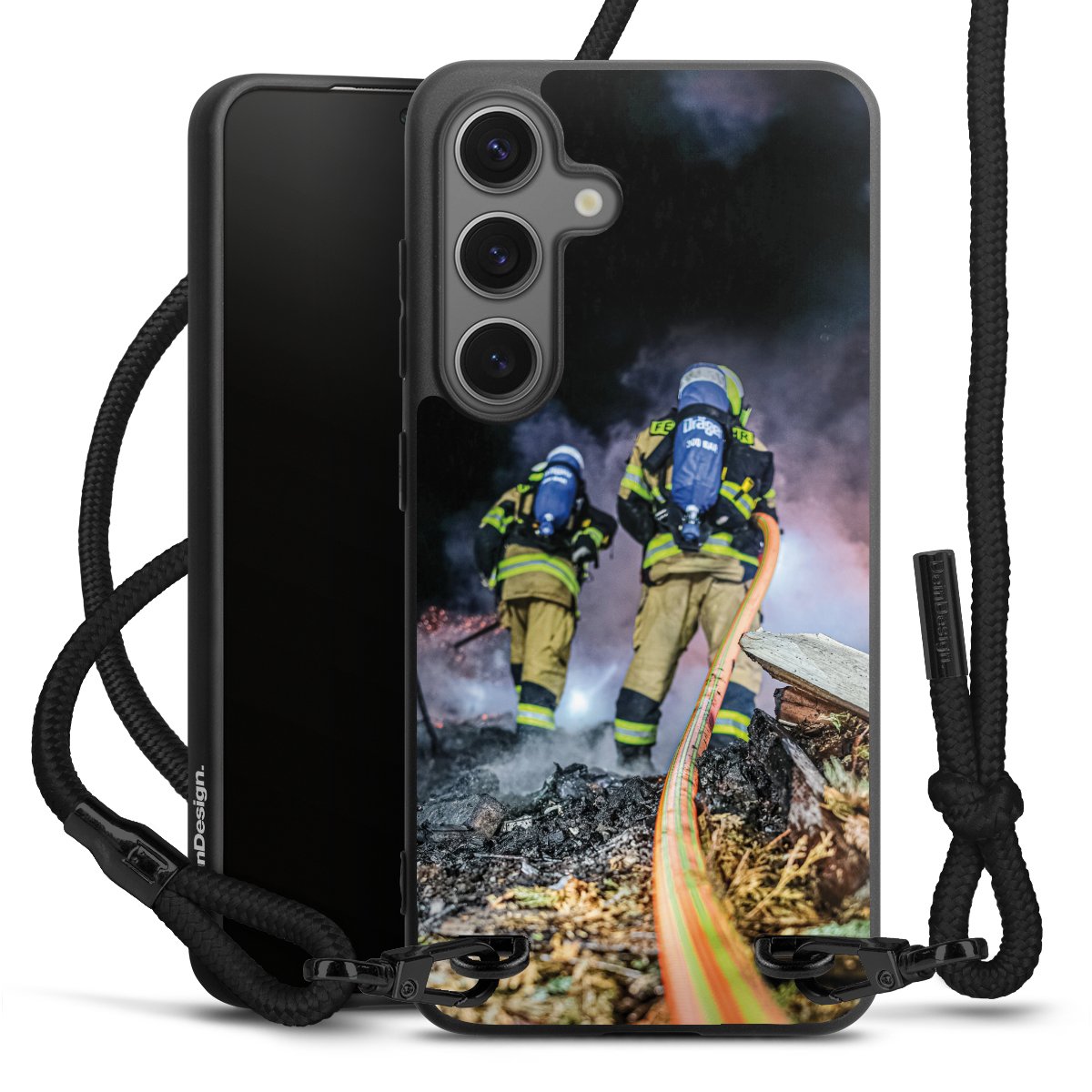 The matt black silicone case is made of flexible TPU (thermoplastic polyurethane) and offers robust protection. The durable, unbreakable material makes the cover flexible and dimensionally stable at the same time. The matte surface makes your design stand out more and is less susceptible to fingerprints and dirt. The stylish trend accessory fits comfortably in the hand and is perfectly complemented by the fabric (polyester) mobile phone strap. The braided fabric strap is approx. 1.70 metres long with a diameter of approx. 0.5 cm. Due to the special knotting technique, the length of the strap can be adjusted by simply pulling it, so that you can adapt it individually to your wishes. The practical case to wear around your neck is available with the fabric strap in black. As a little icing on the cake, we have provided the strap with a chic metal fastener in matt black. The strap is securely fastened to the case with loops made of high-quality genuine leather and press studs. The ends of the fabric strap are covered with metallic end caps and thus protected from fraying.