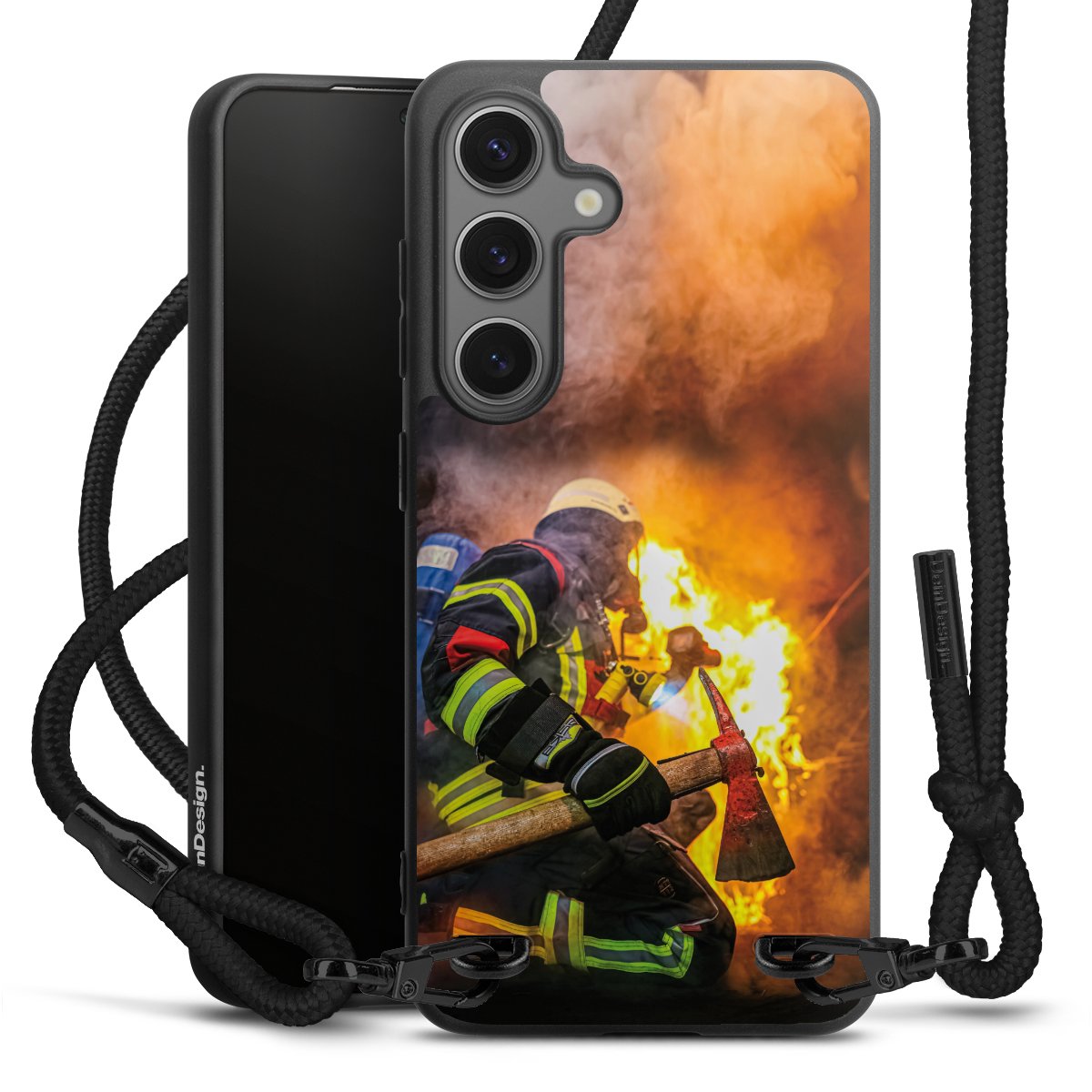 The matt black silicone case is made of flexible TPU (thermoplastic polyurethane) and offers robust protection. The durable, unbreakable material makes the cover flexible and dimensionally stable at the same time. The matte surface makes your design stand out more and is less susceptible to fingerprints and dirt. The stylish trend accessory fits comfortably in the hand and is perfectly complemented by the fabric (polyester) mobile phone strap. The braided fabric strap is approx. 1.70 metres long with a diameter of approx. 0.5 cm. Due to the special knotting technique, the length of the strap can be adjusted by simply pulling it, so that you can adapt it individually to your wishes. The practical case to wear around your neck is available with the fabric strap in black. As a little icing on the cake, we have provided the strap with a chic metal fastener in matt black. The strap is securely fastened to the case with loops made of high-quality genuine leather and press studs. The ends of the fabric strap are covered with metallic end caps and thus protected from fraying.