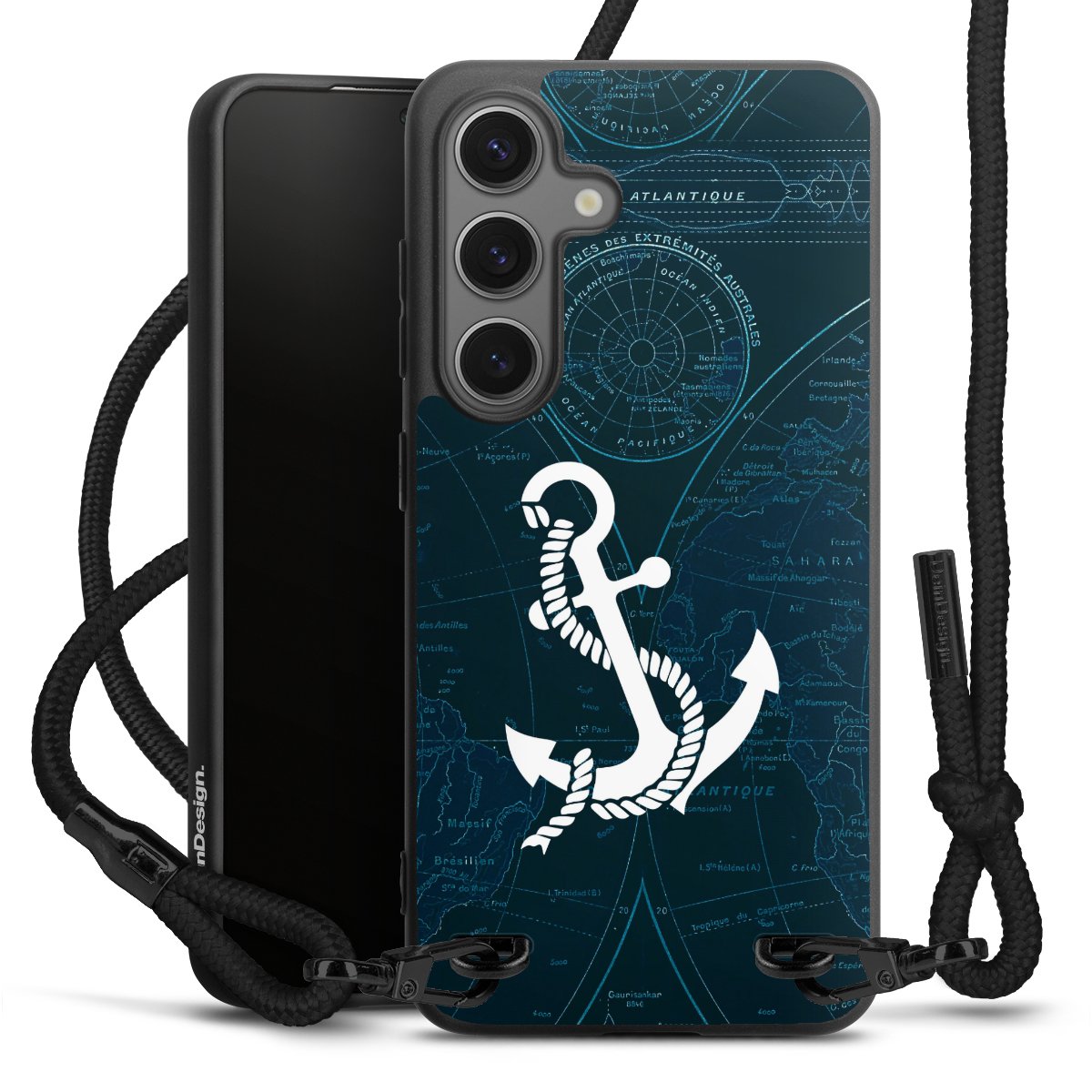 The matt black silicone case is made of flexible TPU (thermoplastic polyurethane) and offers robust protection. The durable, unbreakable material makes the cover flexible and dimensionally stable at the same time. The matte surface makes your design stand out more and is less susceptible to fingerprints and dirt. The stylish trend accessory fits comfortably in the hand and is perfectly complemented by the fabric (polyester) mobile phone strap. The braided fabric strap is approx. 1.70 metres long with a diameter of approx. 0.5 cm. Due to the special knotting technique, the length of the strap can be adjusted by simply pulling it, so that you can adapt it individually to your wishes. The practical case to wear around your neck is available with the fabric strap in black. As a little icing on the cake, we have provided the strap with a chic metal fastener in matt black. The strap is securely fastened to the case with loops made of high-quality genuine leather and press studs. The ends of the fabric strap are covered with metallic end caps and thus protected from fraying.