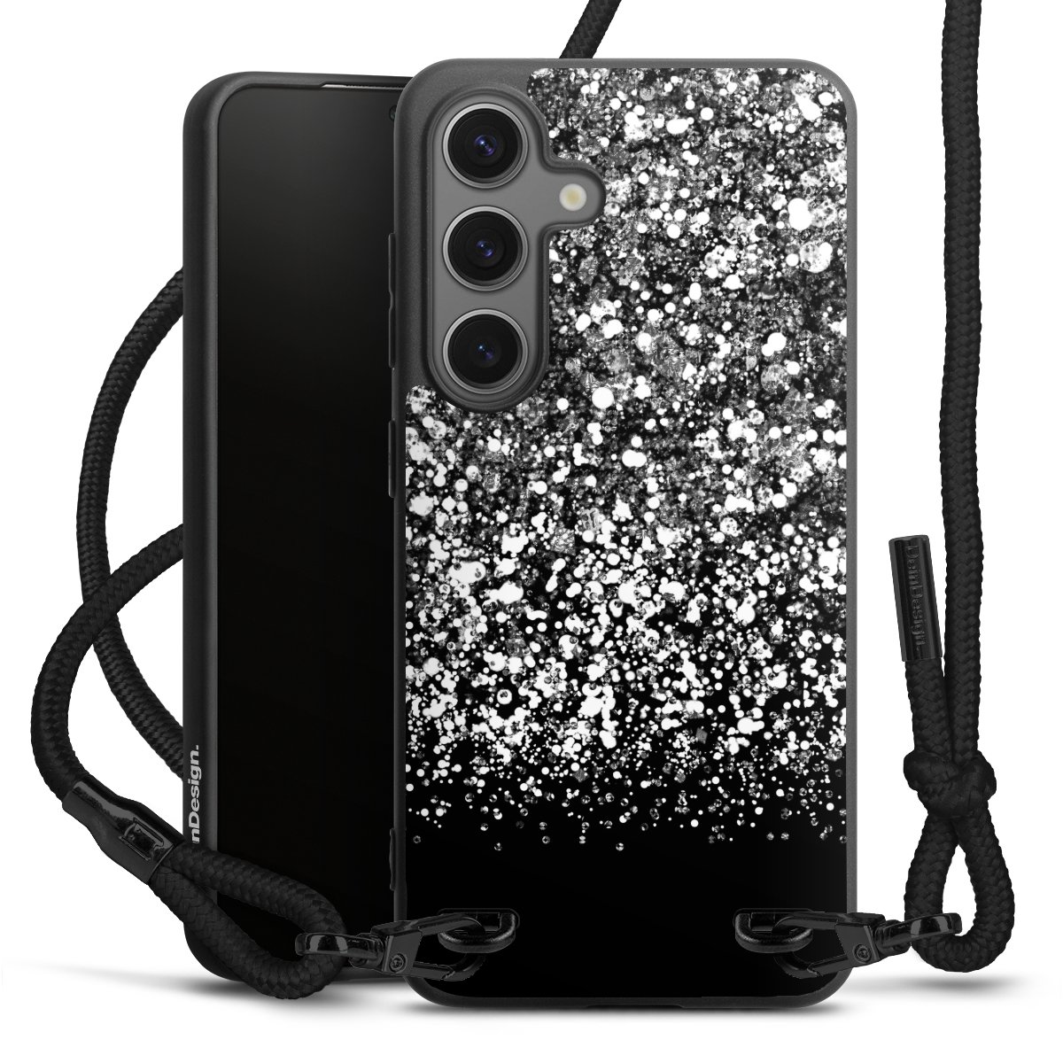 The matt black silicone case is made of flexible TPU (thermoplastic polyurethane) and offers robust protection. The durable, unbreakable material makes the cover flexible and dimensionally stable at the same time. The matte surface makes your design stand out more and is less susceptible to fingerprints and dirt. The stylish trend accessory fits comfortably in the hand and is perfectly complemented by the fabric (polyester) mobile phone strap. The braided fabric strap is approx. 1.70 metres long with a diameter of approx. 0.5 cm. Due to the special knotting technique, the length of the strap can be adjusted by simply pulling it, so that you can adapt it individually to your wishes. The practical case to wear around your neck is available with the fabric strap in black. As a little icing on the cake, we have provided the strap with a chic metal fastener in matt black. The strap is securely fastened to the case with loops made of high-quality genuine leather and press studs. The ends of the fabric strap are covered with metallic end caps and thus protected from fraying.