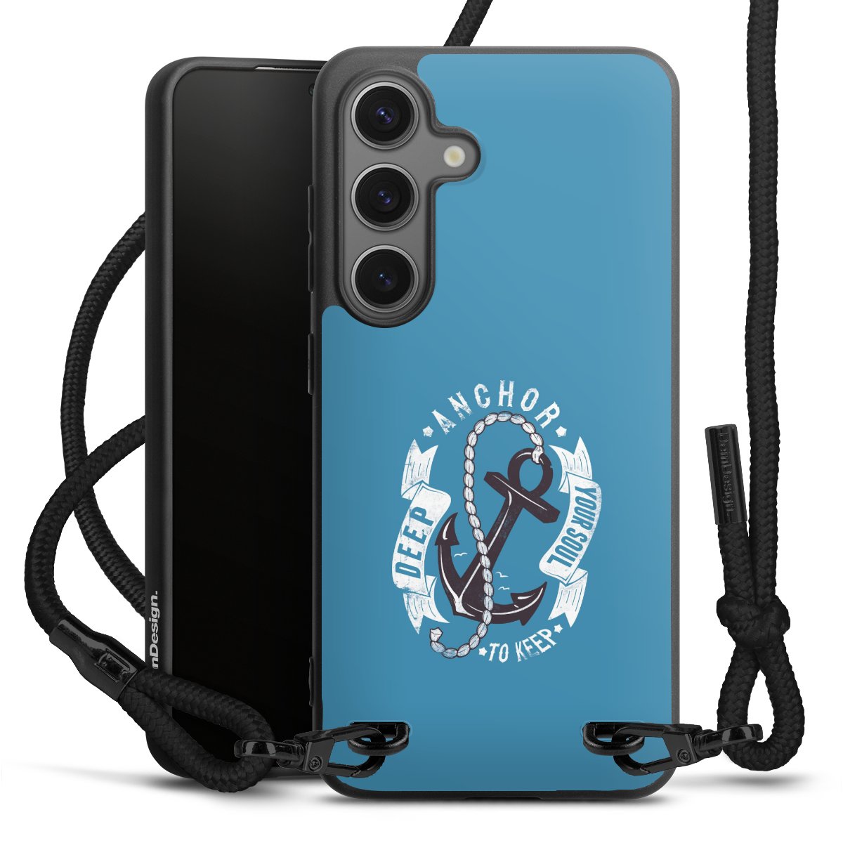 The matt black silicone case is made of flexible TPU (thermoplastic polyurethane) and offers robust protection. The durable, unbreakable material makes the cover flexible and dimensionally stable at the same time. The matte surface makes your design stand out more and is less susceptible to fingerprints and dirt. The stylish trend accessory fits comfortably in the hand and is perfectly complemented by the fabric (polyester) mobile phone strap. The braided fabric strap is approx. 1.70 metres long with a diameter of approx. 0.5 cm. Due to the special knotting technique, the length of the strap can be adjusted by simply pulling it, so that you can adapt it individually to your wishes. The practical case to wear around your neck is available with the fabric strap in black. As a little icing on the cake, we have provided the strap with a chic metal fastener in matt black. The strap is securely fastened to the case with loops made of high-quality genuine leather and press studs. The ends of the fabric strap are covered with metallic end caps and thus protected from fraying.