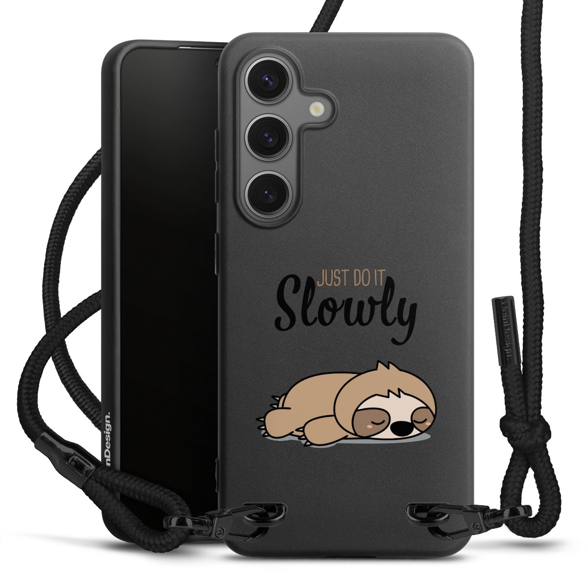 The matt black silicone case is made of flexible TPU (thermoplastic polyurethane) and offers robust protection. The durable, unbreakable material makes the cover flexible and dimensionally stable at the same time. The matte surface makes your design stand out more and is less susceptible to fingerprints and dirt. The stylish trend accessory fits comfortably in the hand and is perfectly complemented by the fabric (polyester) mobile phone strap. The braided fabric strap is approx. 1.70 metres long with a diameter of approx. 0.5 cm. Due to the special knotting technique, the length of the strap can be adjusted by simply pulling it, so that you can adapt it individually to your wishes. The practical case to wear around your neck is available with the fabric strap in black. As a little icing on the cake, we have provided the strap with a chic metal fastener in matt black. The strap is securely fastened to the case with loops made of high-quality genuine leather and press studs. The ends of the fabric strap are covered with metallic end caps and thus protected from fraying.
