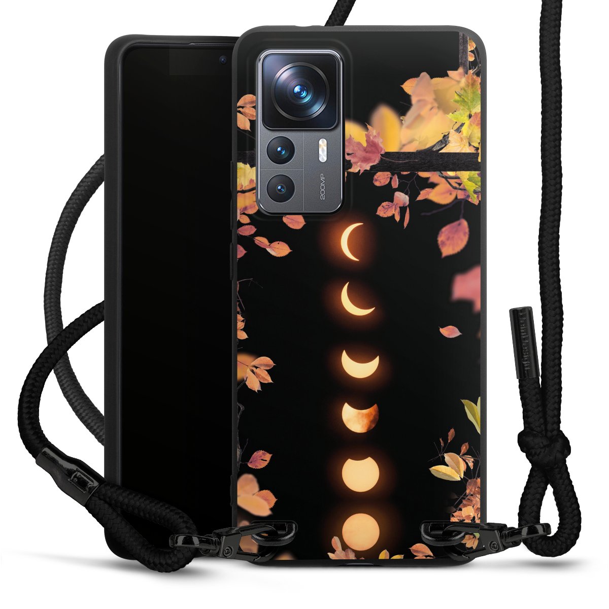 The matt black silicone case is made of flexible TPU (thermoplastic polyurethane) and offers robust protection. The durable, unbreakable material makes the cover flexible and dimensionally stable at the same time. The matte surface makes your design stand out more and is less susceptible to fingerprints and dirt. The stylish trend accessory fits comfortably in the hand and is perfectly complemented by the fabric (polyester) mobile phone strap. The braided fabric strap is approx. 1.70 metres long with a diameter of approx. 0.5 cm. Due to the special knotting technique, the length of the strap can be adjusted by simply pulling it, so that you can adapt it individually to your wishes. The practical case to wear around your neck is available with the fabric strap in black. As a little icing on the cake, we have provided the strap with a chic metal fastener in matt black. The strap is securely fastened to the case with loops made of high-quality genuine leather and press studs. The ends of the fabric strap are covered with metallic end caps and thus protected from fraying.