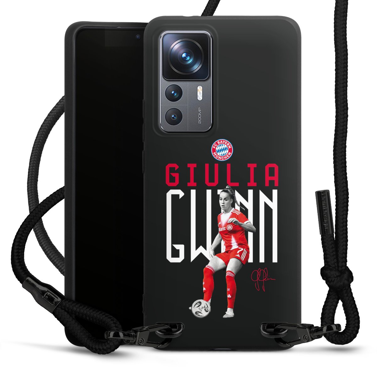 The matt black silicone case is made of flexible TPU (thermoplastic polyurethane) and offers robust protection. The durable, unbreakable material makes the cover flexible and dimensionally stable at the same time. The matte surface makes your design stand out more and is less susceptible to fingerprints and dirt. The stylish trend accessory fits comfortably in the hand and is perfectly complemented by the fabric (polyester) mobile phone strap. The braided fabric strap is approx. 1.70 metres long with a diameter of approx. 0.5 cm. Due to the special knotting technique, the length of the strap can be adjusted by simply pulling it, so that you can adapt it individually to your wishes. The practical case to wear around your neck is available with the fabric strap in black. As a little icing on the cake, we have provided the strap with a chic metal fastener in matt black. The strap is securely fastened to the case with loops made of high-quality genuine leather and press studs. The ends of the fabric strap are covered with metallic end caps and thus protected from fraying.