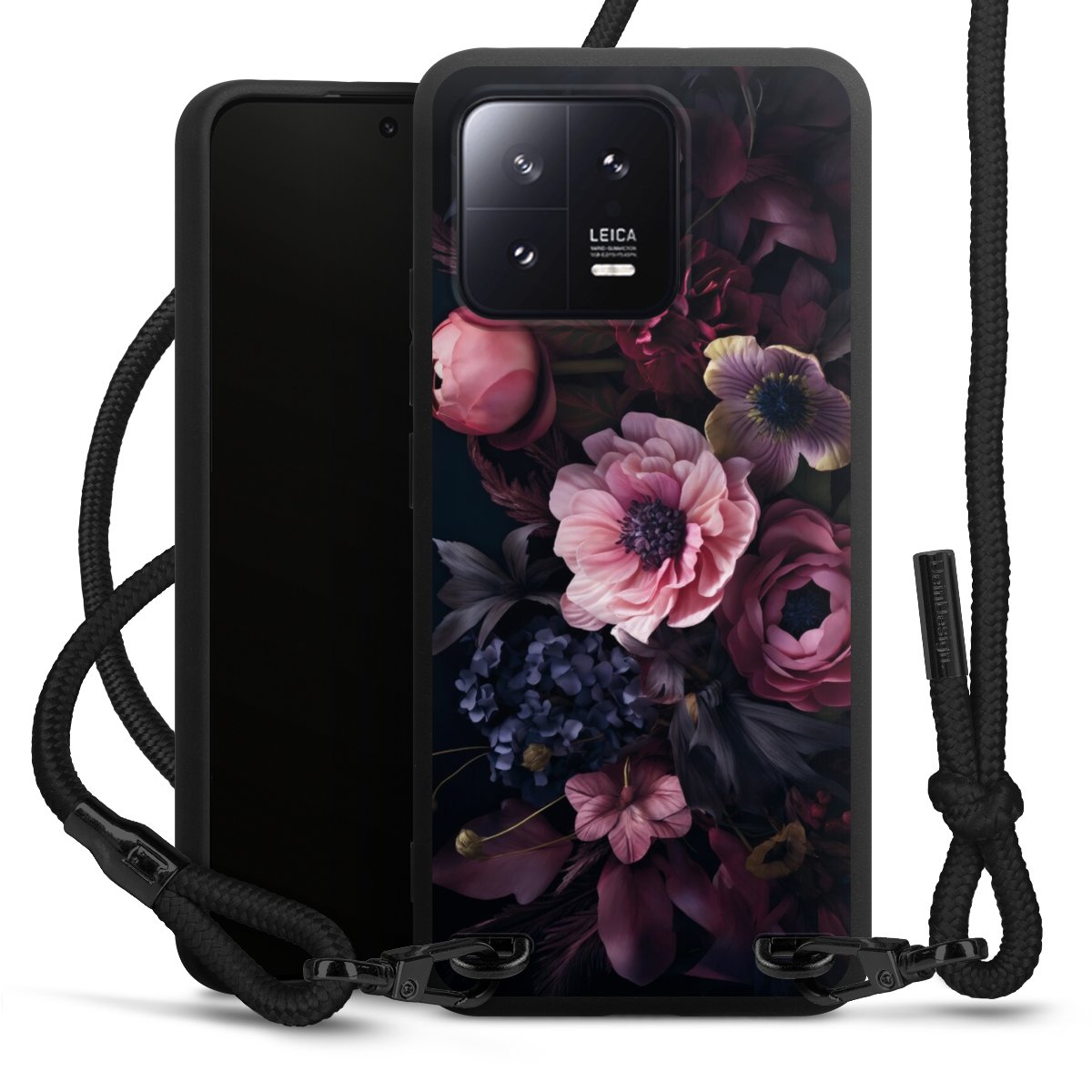 The matt black silicone case is made of flexible TPU (thermoplastic polyurethane) and offers robust protection. The durable, unbreakable material makes the cover flexible and dimensionally stable at the same time. The matte surface makes your design stand out more and is less susceptible to fingerprints and dirt. The stylish trend accessory fits comfortably in the hand and is perfectly complemented by the fabric (polyester) mobile phone strap. The braided fabric strap is approx. 1.70 metres long with a diameter of approx. 0.5 cm. Due to the special knotting technique, the length of the strap can be adjusted by simply pulling it, so that you can adapt it individually to your wishes. The practical case to wear around your neck is available with the fabric strap in black. As a little icing on the cake, we have provided the strap with a chic metal fastener in matt black. The strap is securely fastened to the case with loops made of high-quality genuine leather and press studs. The ends of the fabric strap are covered with metallic end caps and thus protected from fraying.