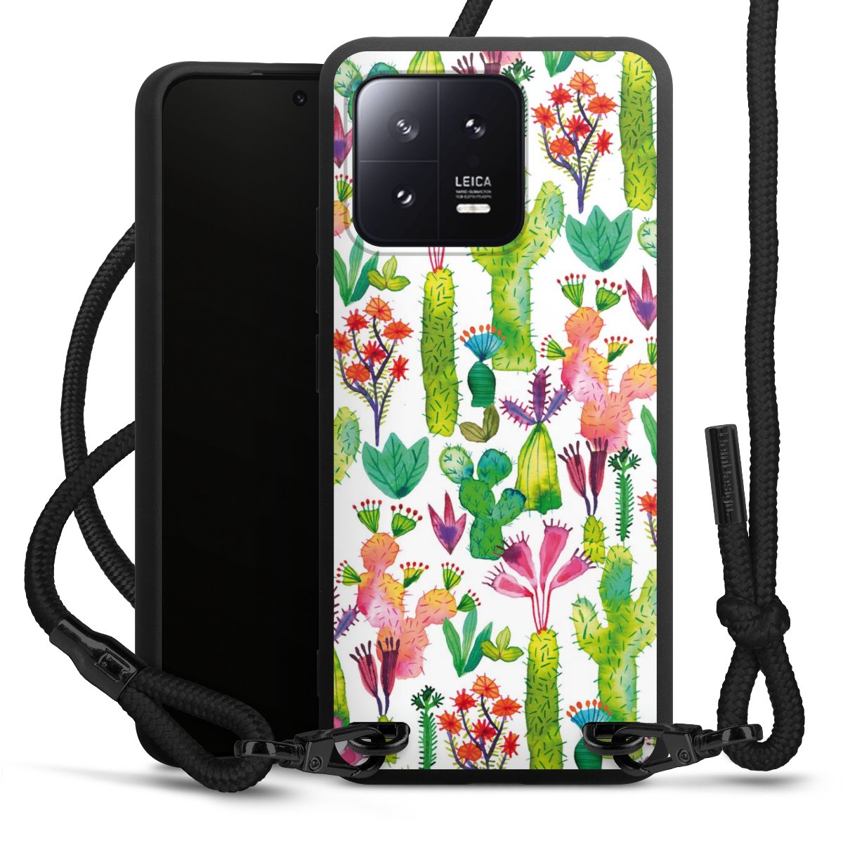 We use the solid direct print process for this phone case, which is why the print area only covers the back and the edge remains unprinted. The case to wear around your neck can be ordered unprinted, fully printed, or partially printed. For your design, either choose one of our exclusive shop motifs or get creative and create your own design, for example with photos and overlays. Design your own personal trend accessory and make an individual statement on the streets!