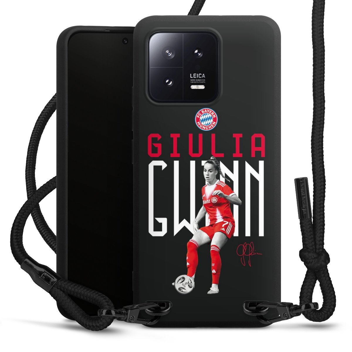 The matt black silicone case is made of flexible TPU (thermoplastic polyurethane) and offers robust protection. The durable, unbreakable material makes the cover flexible and dimensionally stable at the same time. The matte surface makes your design stand out more and is less susceptible to fingerprints and dirt. The stylish trend accessory fits comfortably in the hand and is perfectly complemented by the fabric (polyester) mobile phone strap. The braided fabric strap is approx. 1.70 metres long with a diameter of approx. 0.5 cm. Due to the special knotting technique, the length of the strap can be adjusted by simply pulling it, so that you can adapt it individually to your wishes. The practical case to wear around your neck is available with the fabric strap in black. As a little icing on the cake, we have provided the strap with a chic metal fastener in matt black. The strap is securely fastened to the case with loops made of high-quality genuine leather and press studs. The ends of the fabric strap are covered with metallic end caps and thus protected from fraying.