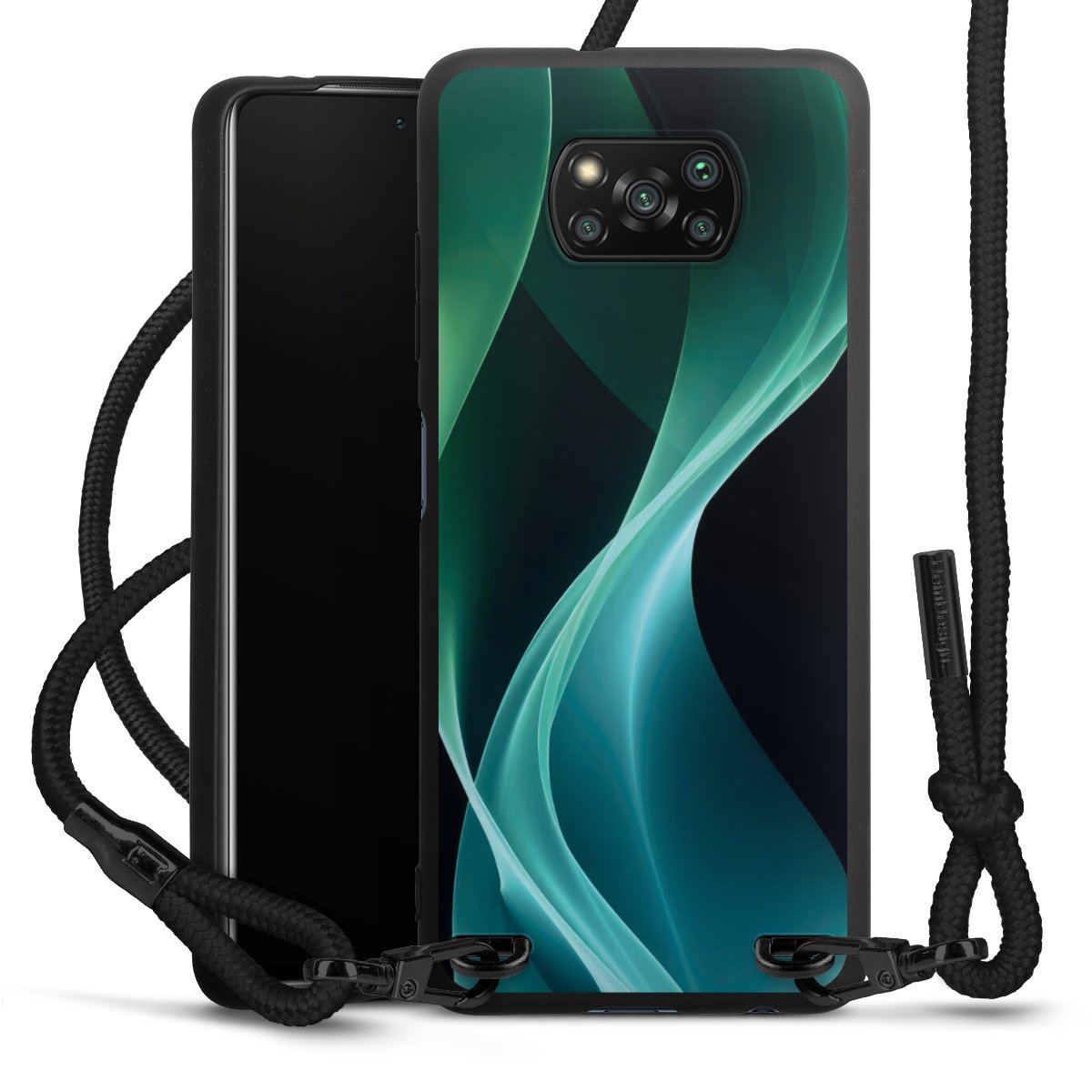 The matt black silicone case is made of flexible TPU (thermoplastic polyurethane) and offers robust protection. The durable, unbreakable material makes the cover flexible and dimensionally stable at the same time. The matte surface makes your design stand out more and is less susceptible to fingerprints and dirt. The stylish trend accessory fits comfortably in the hand and is perfectly complemented by the fabric (polyester) mobile phone strap. The braided fabric strap is approx. 1.70 metres long with a diameter of approx. 0.5 cm. Due to the special knotting technique, the length of the strap can be adjusted by simply pulling it, so that you can adapt it individually to your wishes. The practical case to wear around your neck is available with the fabric strap in black. As a little icing on the cake, we have provided the strap with a chic metal fastener in matt black. The strap is securely fastened to the case with loops made of high-quality genuine leather and press studs. The ends of the fabric strap are covered with metallic end caps and thus protected from fraying.