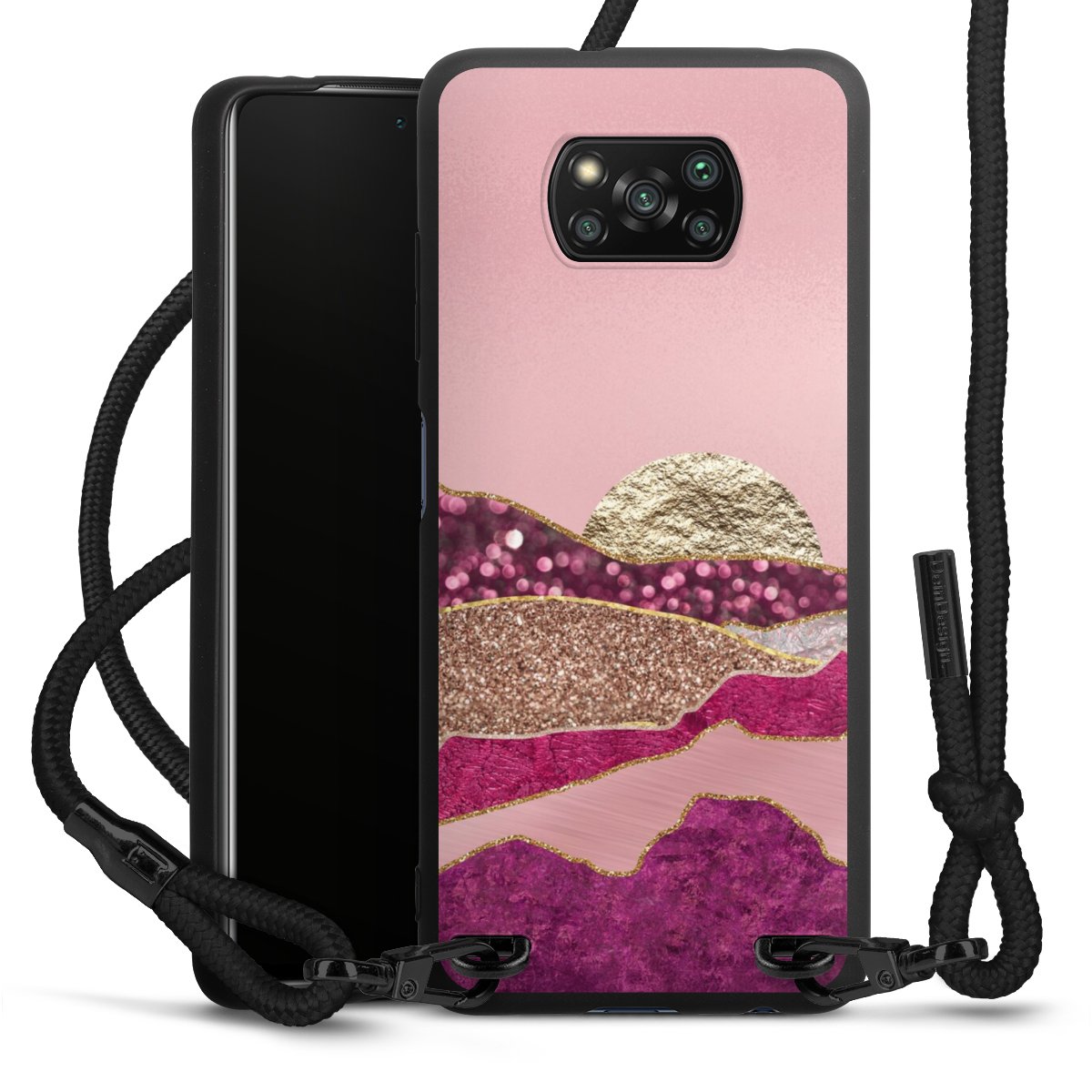 We use the solid direct print process for this phone case, which is why the print area only covers the back and the edge remains unprinted. The case to wear around your neck can be ordered unprinted, fully printed, or partially printed. For your design, either choose one of our exclusive shop motifs or get creative and create your own design, for example with photos and overlays. Design your own personal trend accessory and make an individual statement on the streets!