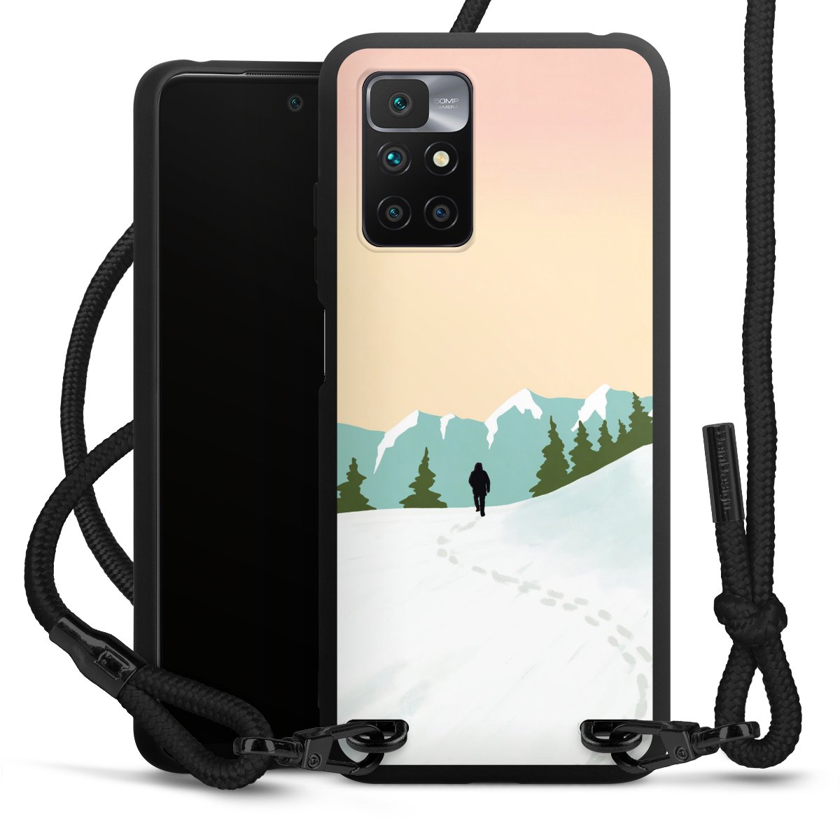 We use the solid direct print process for this phone case, which is why the print area only covers the back and the edge remains unprinted. The case to wear around your neck can be ordered unprinted, fully printed, or partially printed. For your design, either choose one of our exclusive shop motifs or get creative and create your own design, for example with photos and overlays. Design your own personal trend accessory and make an individual statement on the streets!
