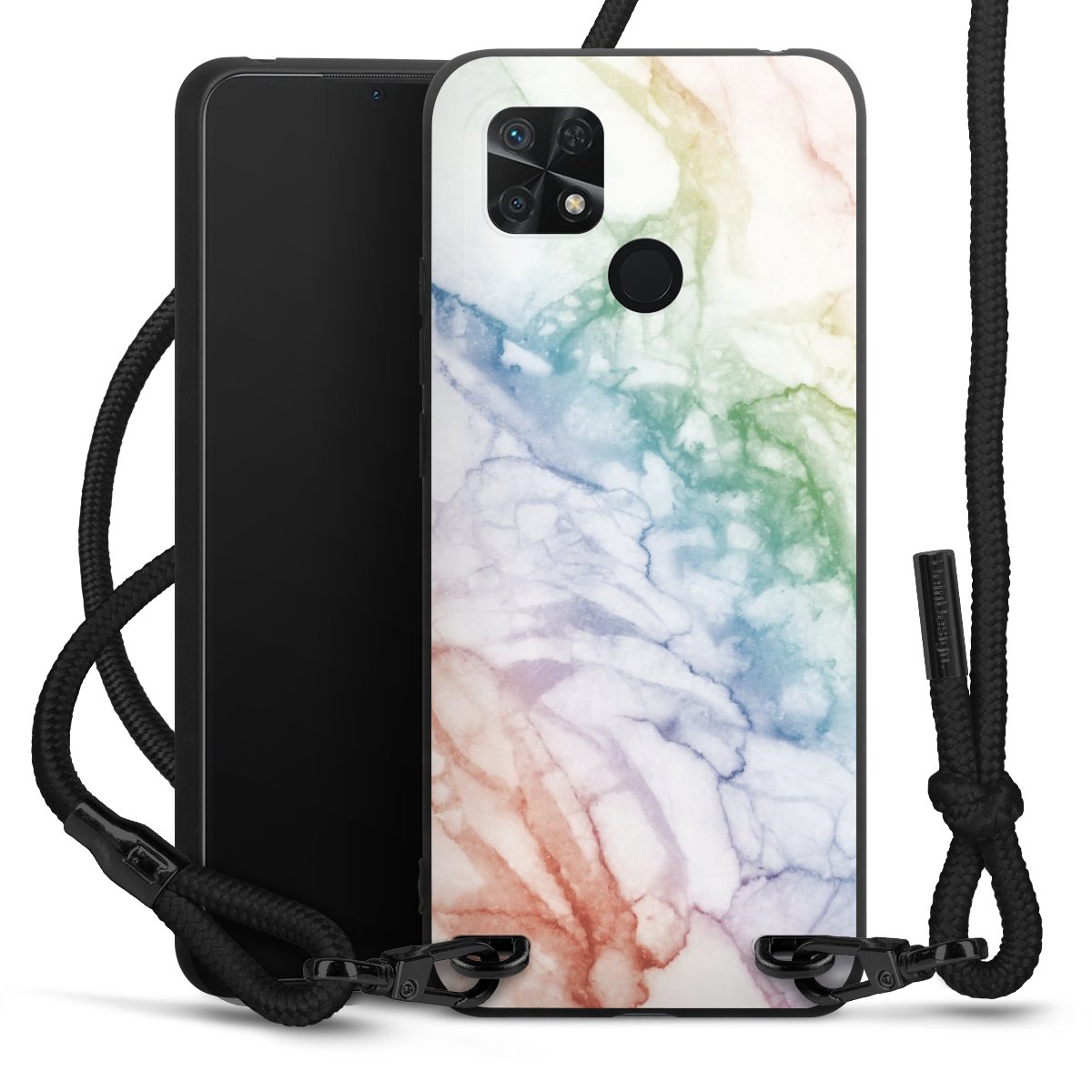 We use the solid direct print process for this phone case, which is why the print area only covers the back and the edge remains unprinted. The case to wear around your neck can be ordered unprinted, fully printed, or partially printed. For your design, either choose one of our exclusive shop motifs or get creative and create your own design, for example with photos and overlays. Design your own personal trend accessory and make an individual statement on the streets!