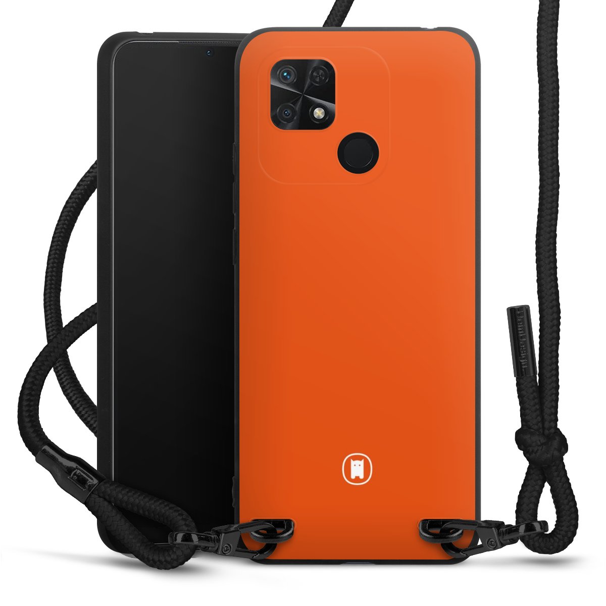 The matt black silicone case is made of flexible TPU (thermoplastic polyurethane) and offers robust protection. The durable, unbreakable material makes the cover flexible and dimensionally stable at the same time. The matte surface makes your design stand out more and is less susceptible to fingerprints and dirt. The stylish trend accessory fits comfortably in the hand and is perfectly complemented by the fabric (polyester) mobile phone strap. The braided fabric strap is approx. 1.70 metres long with a diameter of approx. 0.5 cm. Due to the special knotting technique, the length of the strap can be adjusted by simply pulling it, so that you can adapt it individually to your wishes. The practical case to wear around your neck is available with the fabric strap in black. As a little icing on the cake, we have provided the strap with a chic metal fastener in matt black. The strap is securely fastened to the case with loops made of high-quality genuine leather and press studs. The ends of the fabric strap are covered with metallic end caps and thus protected from fraying.