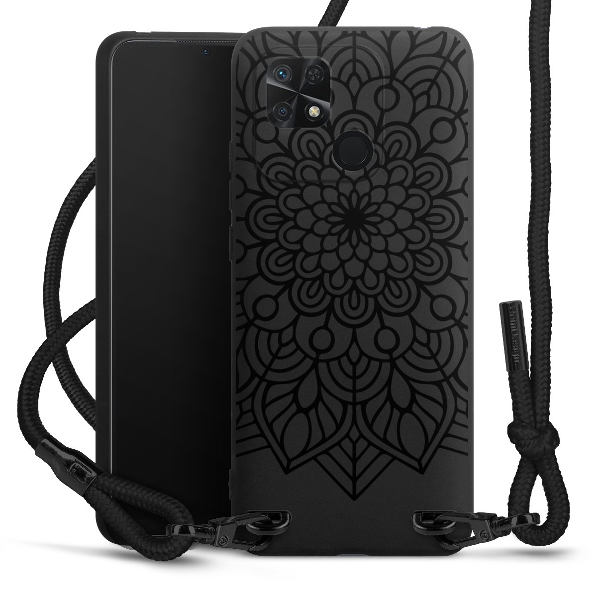 The matt black silicone case is made of flexible TPU (thermoplastic polyurethane) and offers robust protection. The durable, unbreakable material makes the cover flexible and dimensionally stable at the same time. The matte surface makes your design stand out more and is less susceptible to fingerprints and dirt. The stylish trend accessory fits comfortably in the hand and is perfectly complemented by the fabric (polyester) mobile phone strap. The braided fabric strap is approx. 1.70 metres long with a diameter of approx. 0.5 cm. Due to the special knotting technique, the length of the strap can be adjusted by simply pulling it, so that you can adapt it individually to your wishes. The practical case to wear around your neck is available with the fabric strap in black. As a little icing on the cake, we have provided the strap with a chic metal fastener in matt black. The strap is securely fastened to the case with loops made of high-quality genuine leather and press studs. The ends of the fabric strap are covered with metallic end caps and thus protected from fraying.