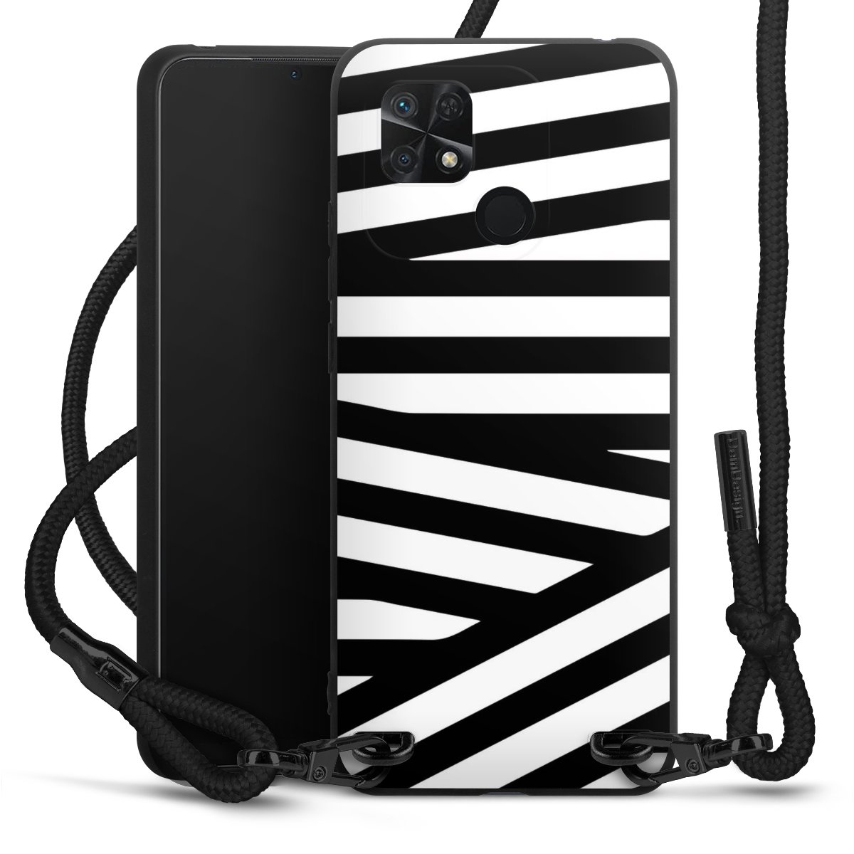 The matt black silicone case is made of flexible TPU (thermoplastic polyurethane) and offers robust protection. The durable, unbreakable material makes the cover flexible and dimensionally stable at the same time. The matte surface makes your design stand out more and is less susceptible to fingerprints and dirt. The stylish trend accessory fits comfortably in the hand and is perfectly complemented by the fabric (polyester) mobile phone strap. The braided fabric strap is approx. 1.70 metres long with a diameter of approx. 0.5 cm. Due to the special knotting technique, the length of the strap can be adjusted by simply pulling it, so that you can adapt it individually to your wishes. The practical case to wear around your neck is available with the fabric strap in black. As a little icing on the cake, we have provided the strap with a chic metal fastener in matt black. The strap is securely fastened to the case with loops made of high-quality genuine leather and press studs. The ends of the fabric strap are covered with metallic end caps and thus protected from fraying.