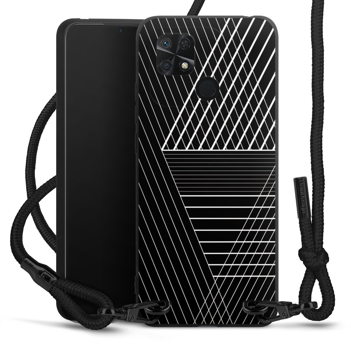 The matt black silicone case is made of flexible TPU (thermoplastic polyurethane) and offers robust protection. The durable, unbreakable material makes the cover flexible and dimensionally stable at the same time. The matte surface makes your design stand out more and is less susceptible to fingerprints and dirt. The stylish trend accessory fits comfortably in the hand and is perfectly complemented by the fabric (polyester) mobile phone strap. The braided fabric strap is approx. 1.70 metres long with a diameter of approx. 0.5 cm. Due to the special knotting technique, the length of the strap can be adjusted by simply pulling it, so that you can adapt it individually to your wishes. The practical case to wear around your neck is available with the fabric strap in black. As a little icing on the cake, we have provided the strap with a chic metal fastener in matt black. The strap is securely fastened to the case with loops made of high-quality genuine leather and press studs. The ends of the fabric strap are covered with metallic end caps and thus protected from fraying.