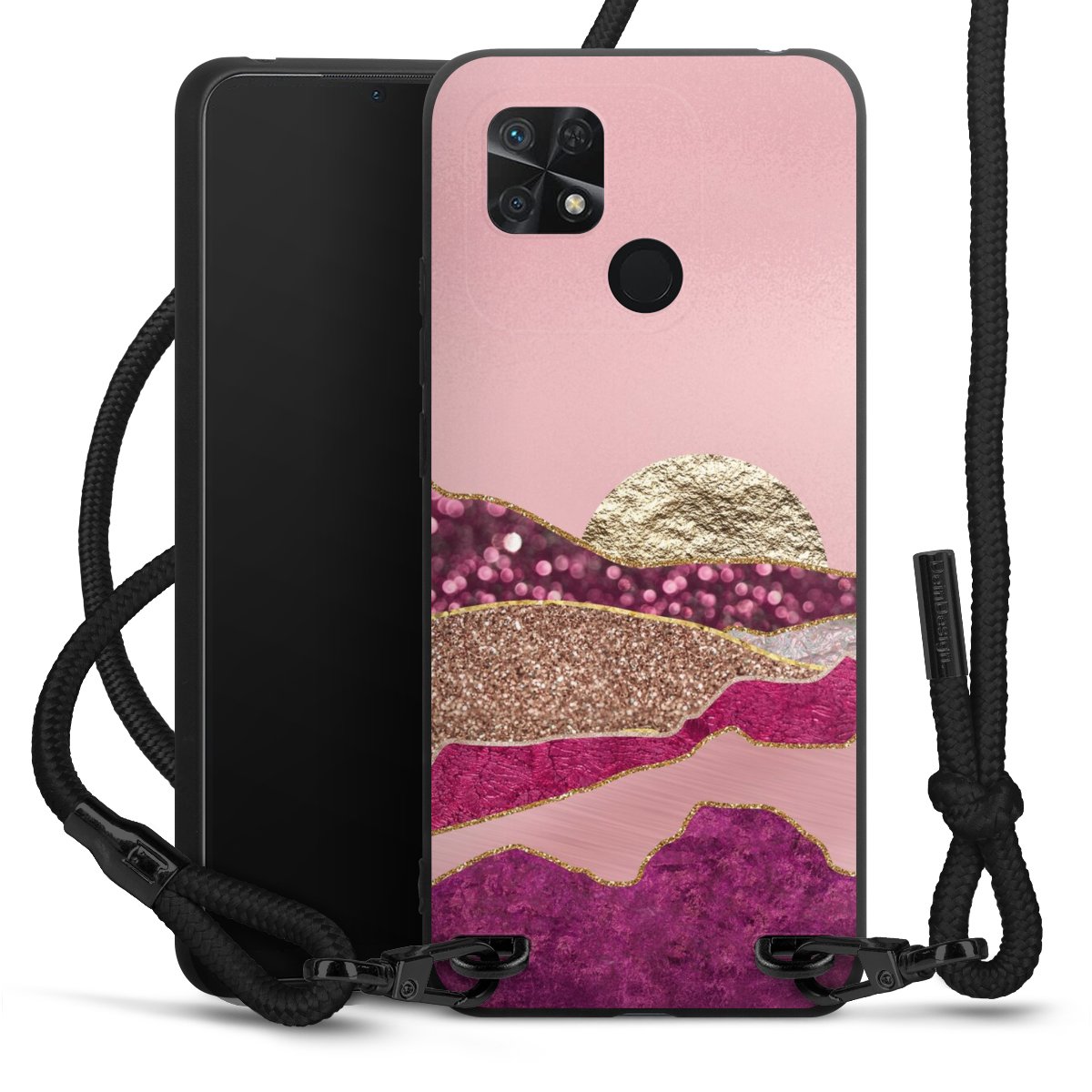 We use the solid direct print process for this phone case, which is why the print area only covers the back and the edge remains unprinted. The case to wear around your neck can be ordered unprinted, fully printed, or partially printed. For your design, either choose one of our exclusive shop motifs or get creative and create your own design, for example with photos and overlays. Design your own personal trend accessory and make an individual statement on the streets!