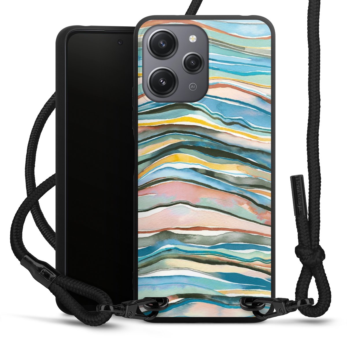 We use the solid direct print process for this phone case, which is why the print area only covers the back and the edge remains unprinted. The case to wear around your neck can be ordered unprinted, fully printed, or partially printed. For your design, either choose one of our exclusive shop motifs or get creative and create your own design, for example with photos and overlays. Design your own personal trend accessory and make an individual statement on the streets!