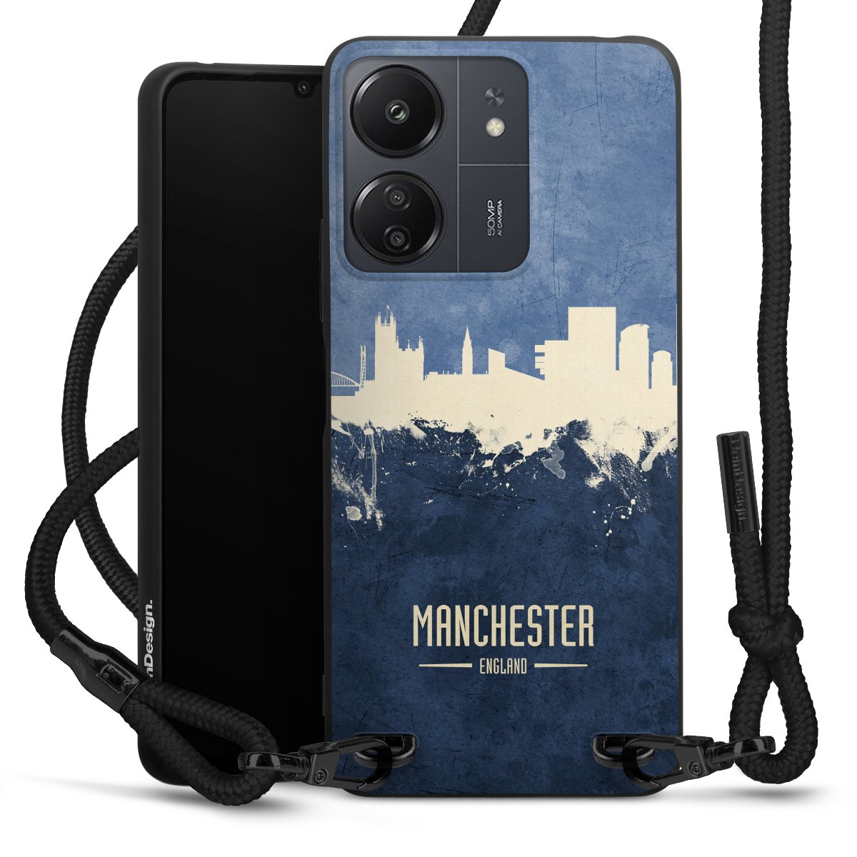 We use the solid direct print process for this phone case, which is why the print area only covers the back and the edge remains unprinted. The case to wear around your neck can be ordered unprinted, fully printed, or partially printed. For your design, either choose one of our exclusive shop motifs or get creative and create your own design, for example with photos and overlays. Design your own personal trend accessory and make an individual statement on the streets!