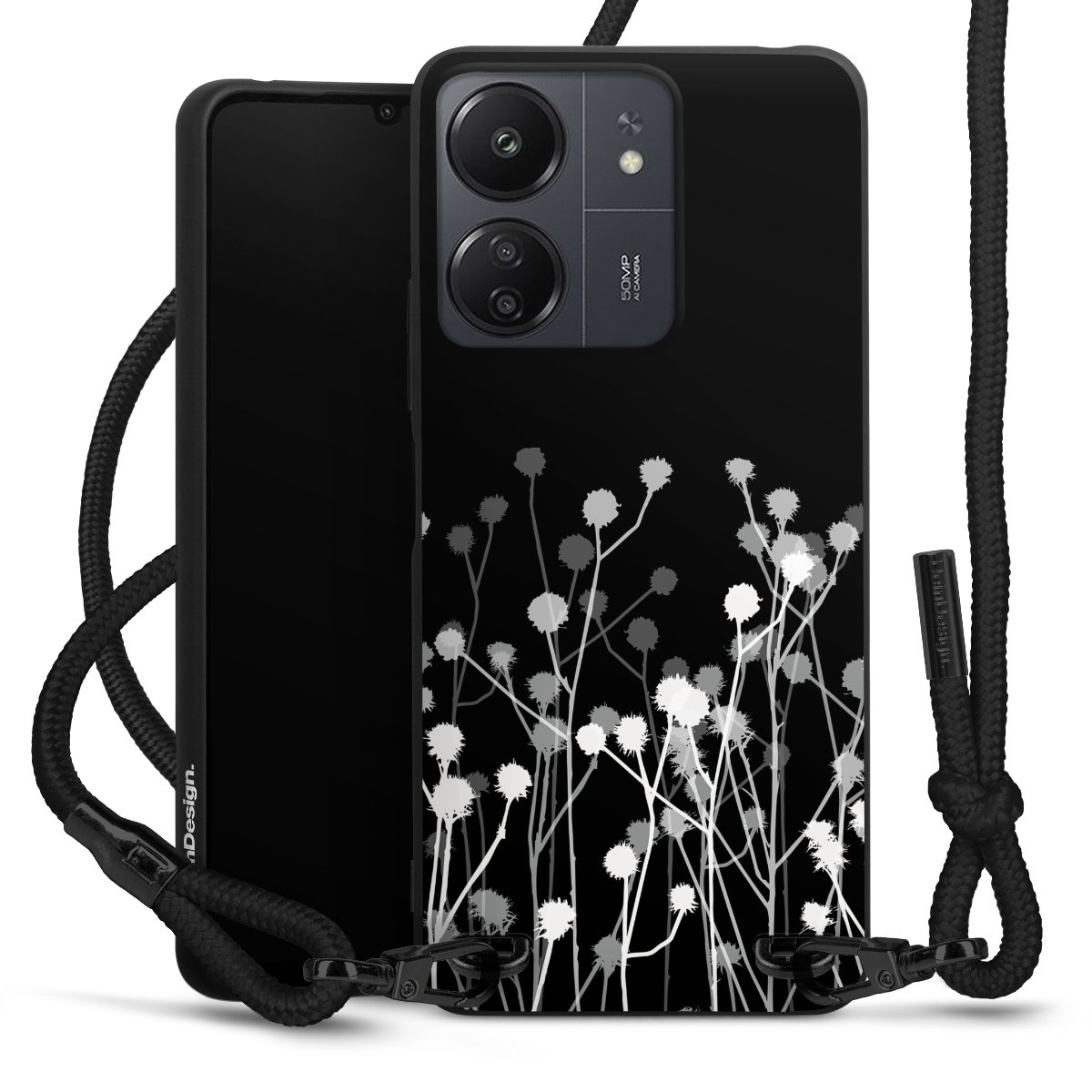 The matt black silicone case is made of flexible TPU (thermoplastic polyurethane) and offers robust protection. The durable, unbreakable material makes the cover flexible and dimensionally stable at the same time. The matte surface makes your design stand out more and is less susceptible to fingerprints and dirt. The stylish trend accessory fits comfortably in the hand and is perfectly complemented by the fabric (polyester) mobile phone strap. The braided fabric strap is approx. 1.70 metres long with a diameter of approx. 0.5 cm. Due to the special knotting technique, the length of the strap can be adjusted by simply pulling it, so that you can adapt it individually to your wishes. The practical case to wear around your neck is available with the fabric strap in black. As a little icing on the cake, we have provided the strap with a chic metal fastener in matt black. The strap is securely fastened to the case with loops made of high-quality genuine leather and press studs. The ends of the fabric strap are covered with metallic end caps and thus protected from fraying.