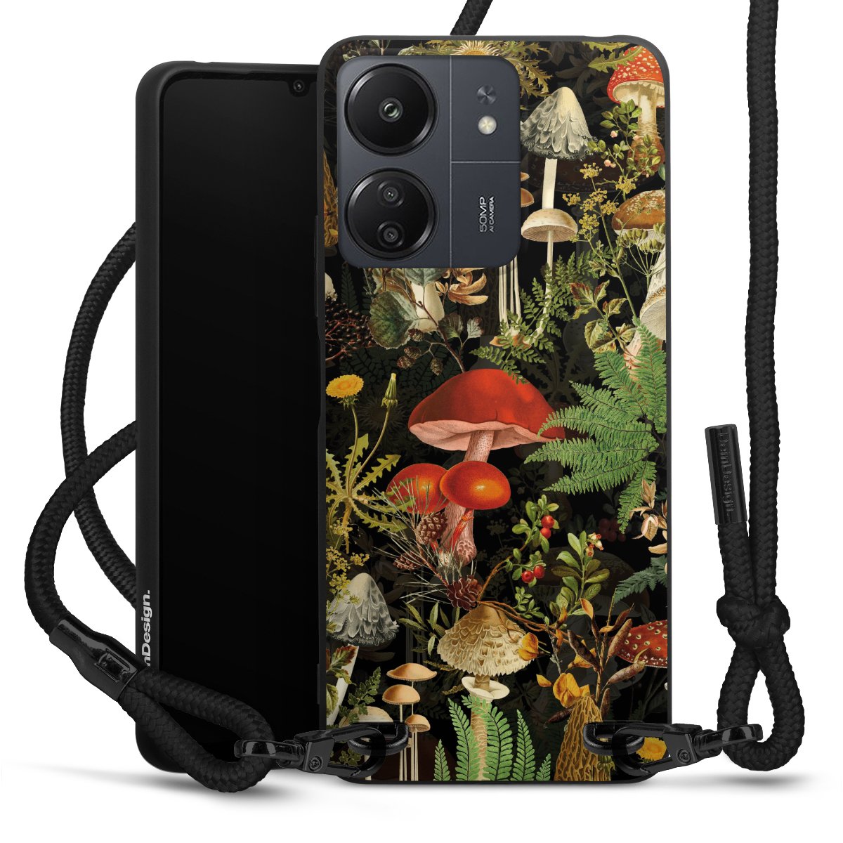 We use the solid direct print process for this phone case, which is why the print area only covers the back and the edge remains unprinted. The case to wear around your neck can be ordered unprinted, fully printed, or partially printed. For your design, either choose one of our exclusive shop motifs or get creative and create your own design, for example with photos and overlays. Design your own personal trend accessory and make an individual statement on the streets!