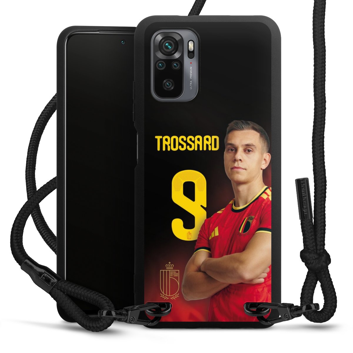 The matt black silicone case is made of flexible TPU (thermoplastic polyurethane) and offers robust protection. The durable, unbreakable material makes the cover flexible and dimensionally stable at the same time. The matte surface makes your design stand out more and is less susceptible to fingerprints and dirt. The stylish trend accessory fits comfortably in the hand and is perfectly complemented by the fabric (polyester) mobile phone strap. The braided fabric strap is approx. 1.70 metres long with a diameter of approx. 0.5 cm. Due to the special knotting technique, the length of the strap can be adjusted by simply pulling it, so that you can adapt it individually to your wishes. The practical case to wear around your neck is available with the fabric strap in black. As a little icing on the cake, we have provided the strap with a chic metal fastener in matt black. The strap is securely fastened to the case with loops made of high-quality genuine leather and press studs. The ends of the fabric strap are covered with metallic end caps and thus protected from fraying.